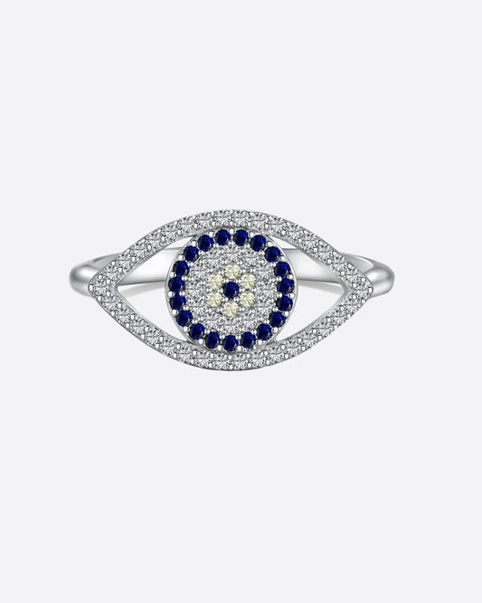 PAVED EVIL EYE RING 925. - WHITE GOLD