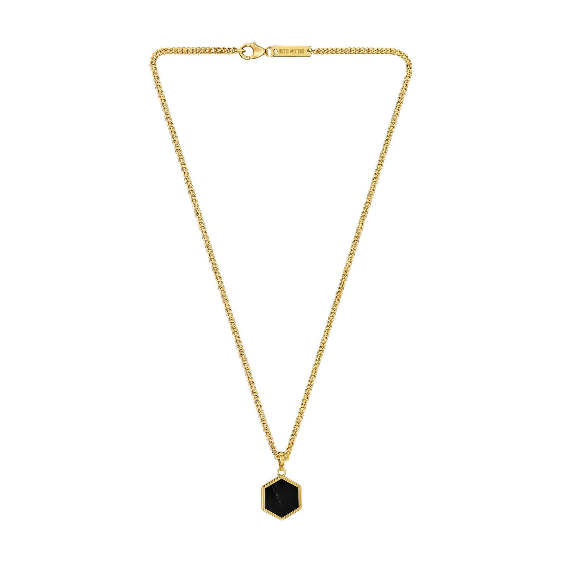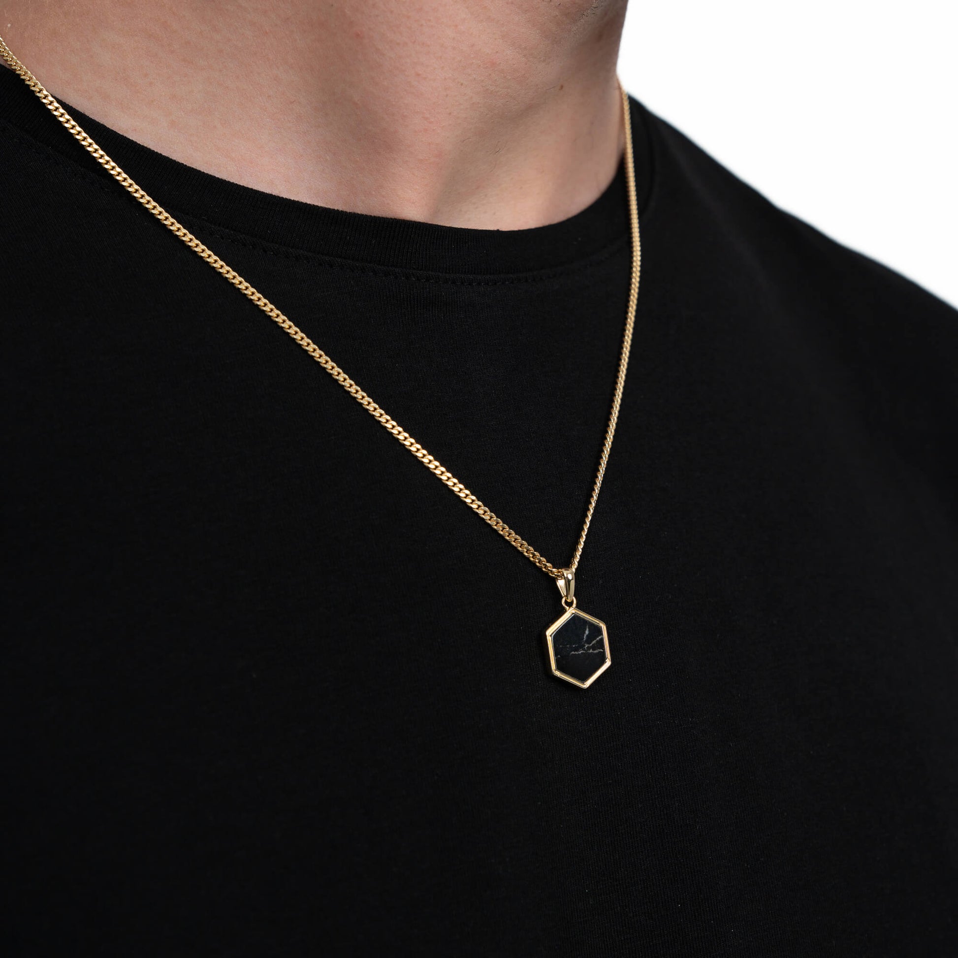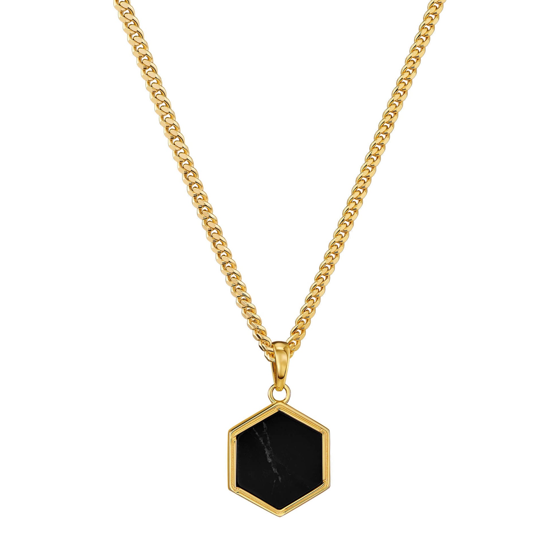 HEXAGON BLACK MARBLE HALSKETTE 925 SILBER 18 KARAT VERGOLDET