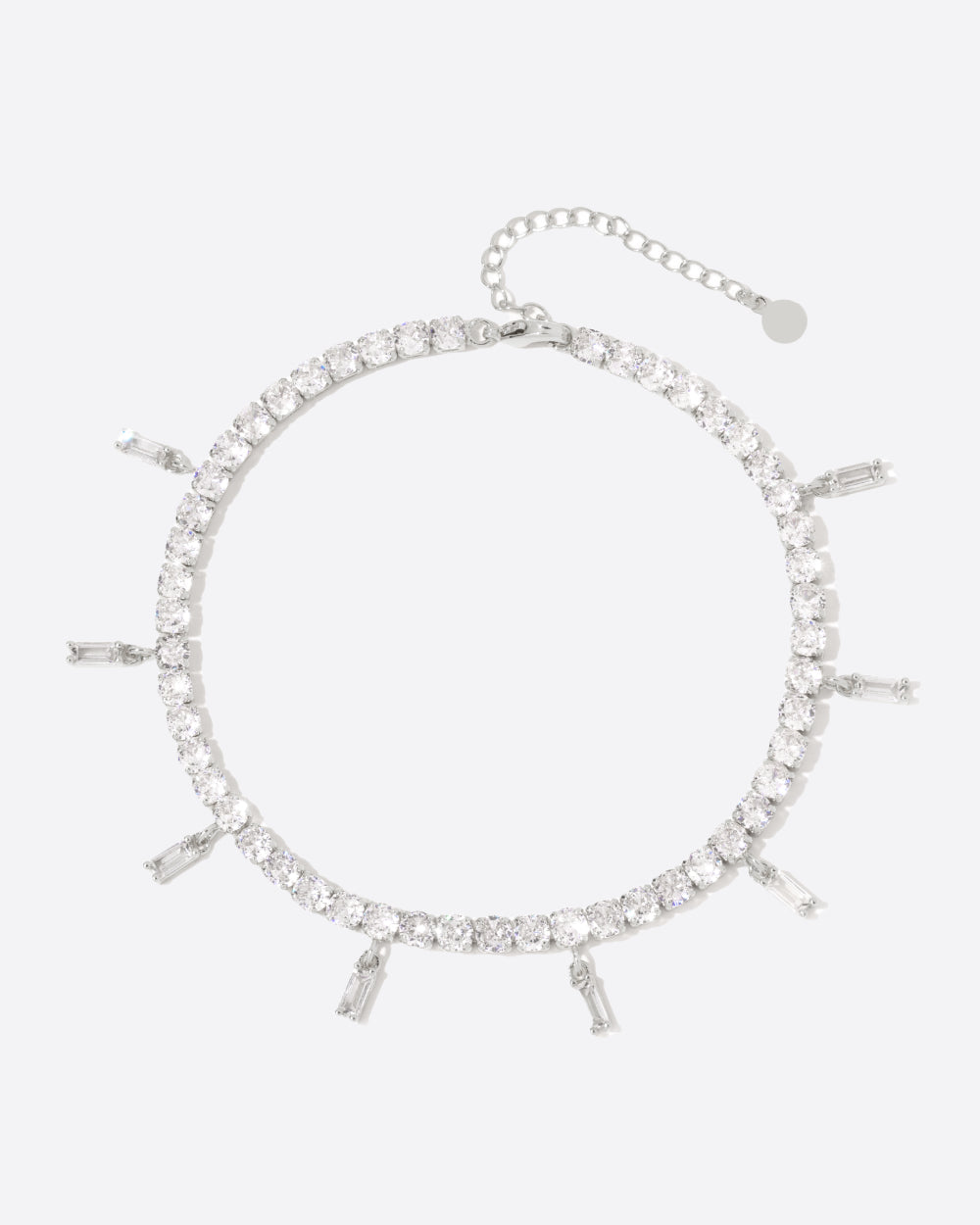 ICED BAGUETTE TENNIS ANKLET. - 4MM WHITE GOLD