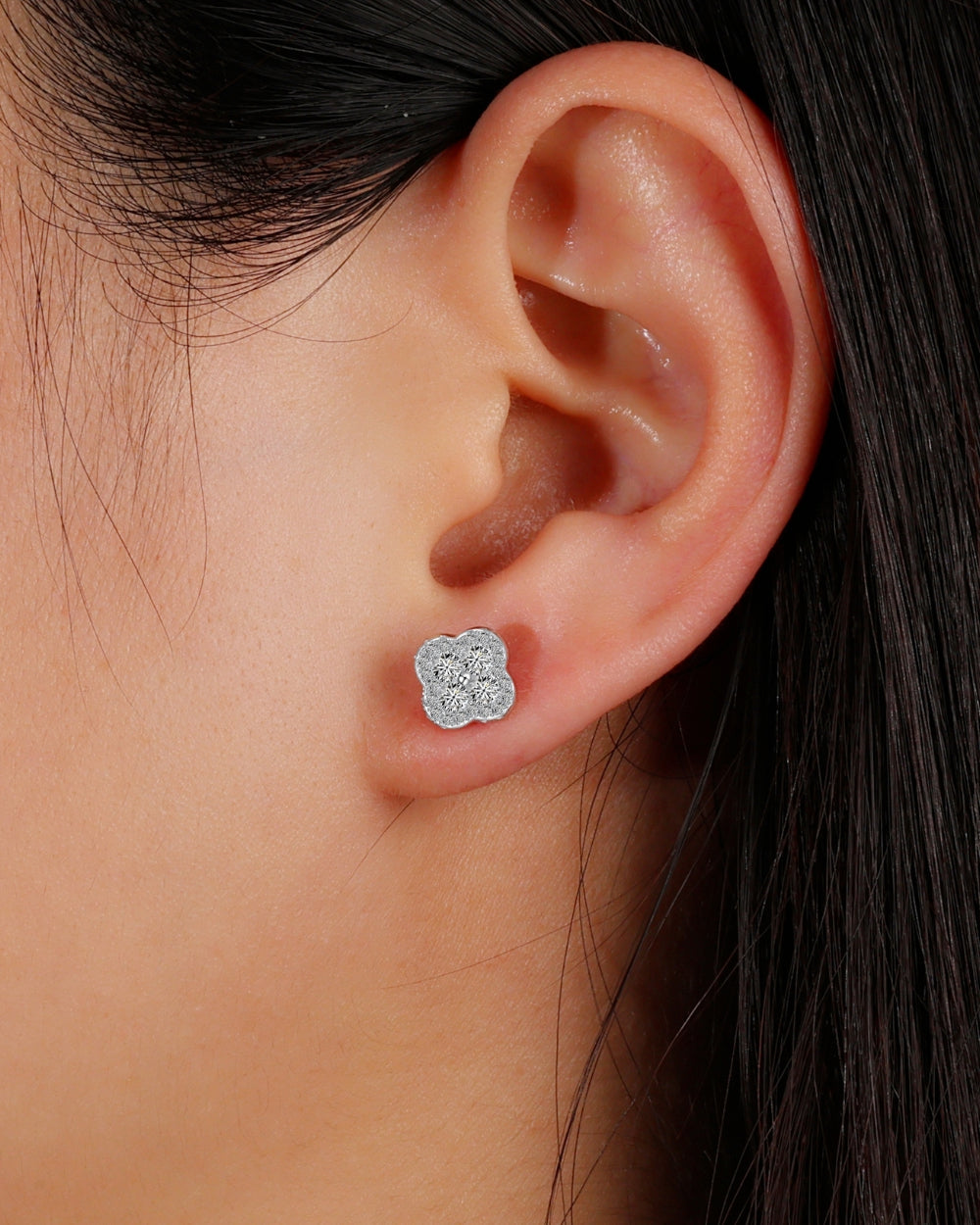 ICED CLOVER STUDS 925. - WHITE GOLD
