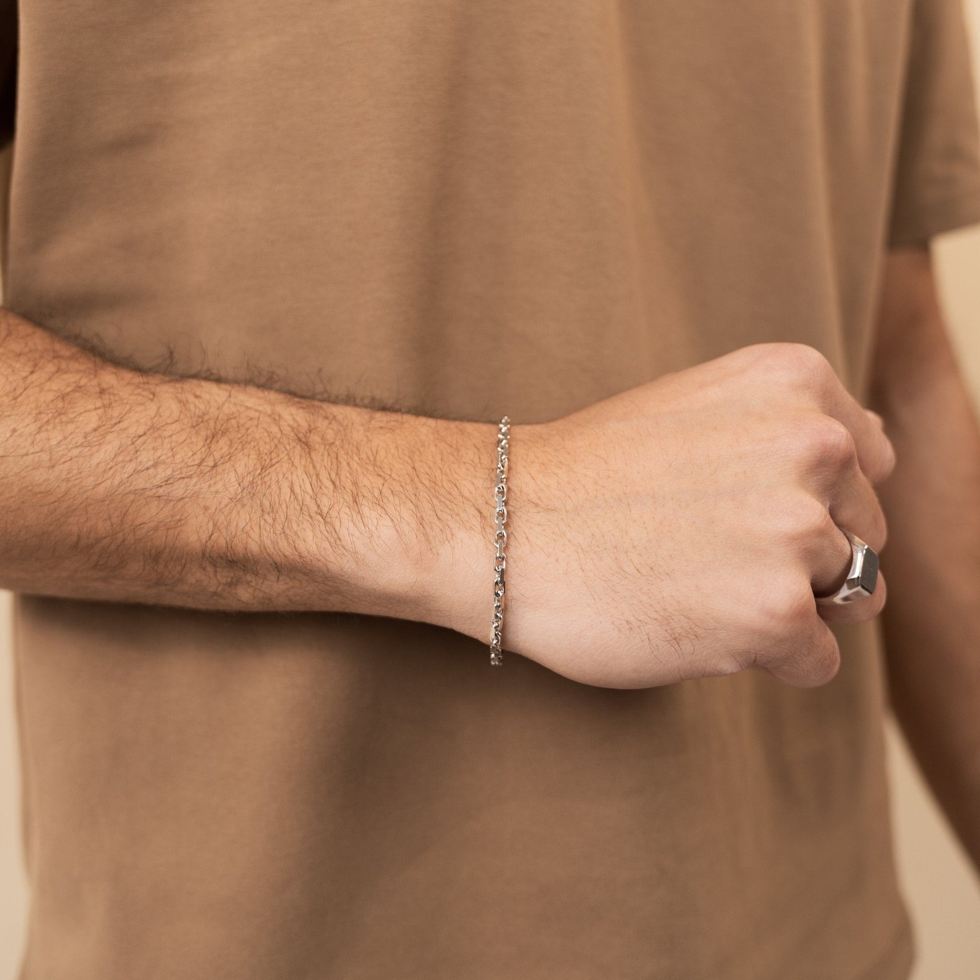 Unser Anker Armband besteht aus massivem 925 Sterlingsilber und wurde mit einer 1 Mikron dicken Schicht aus Rhodium beschichtet.