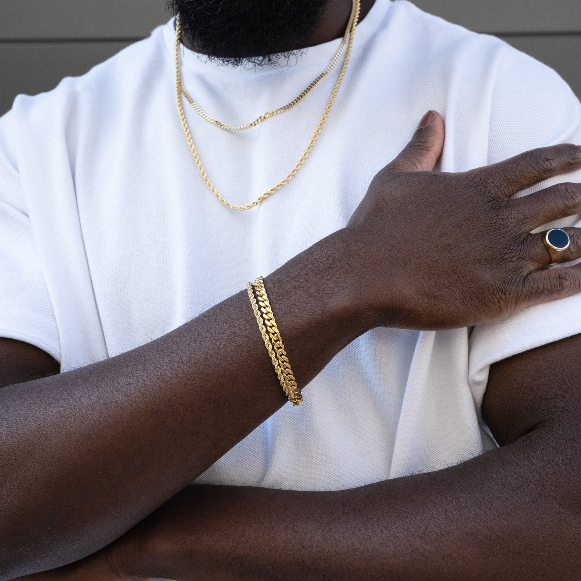 Dieses Schmuckstück ist aus massivem 316L-Edelstahl gefertigt und dreifach mit edlem 18-karätigem Gold beschichtet. Es bietet die Optik und Haptik von massivem Gold ohne den hohen Preis. Dank unseres fortschrittlichen Anlaufschutzes ist es beständig gegen Verblassen, Kratzer und tägliche Abnutzung und verliert garantiert nie seinen Glanz.