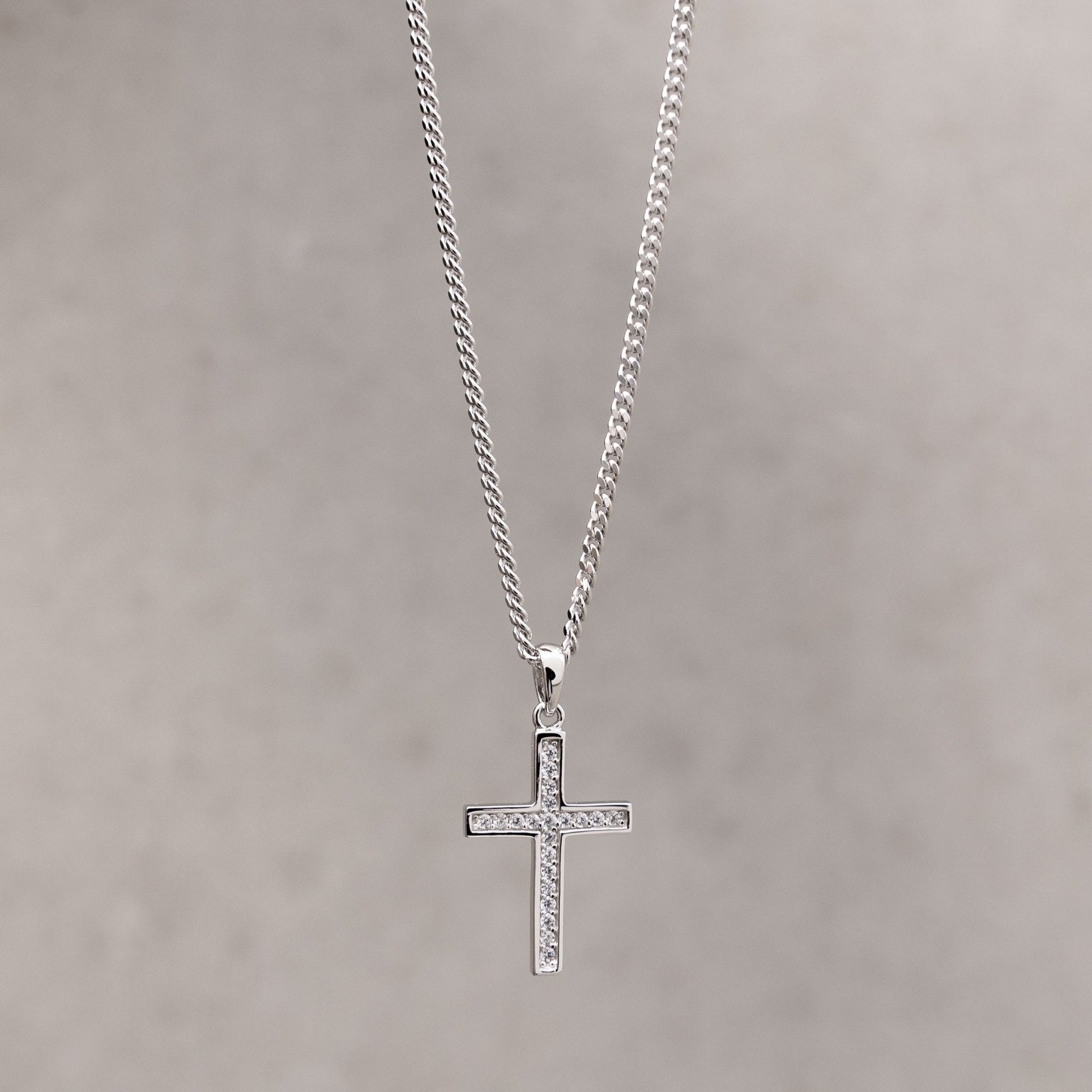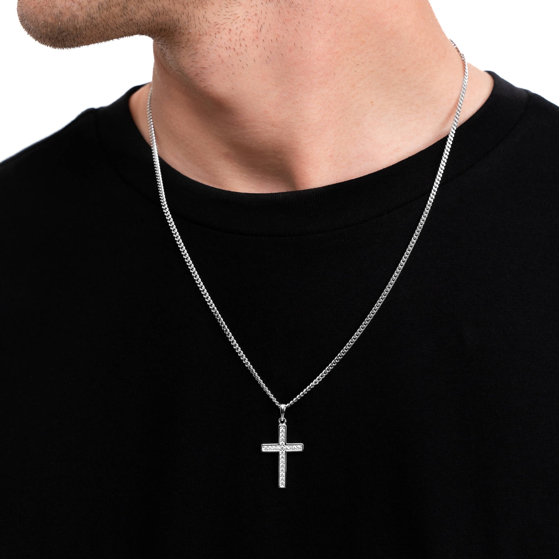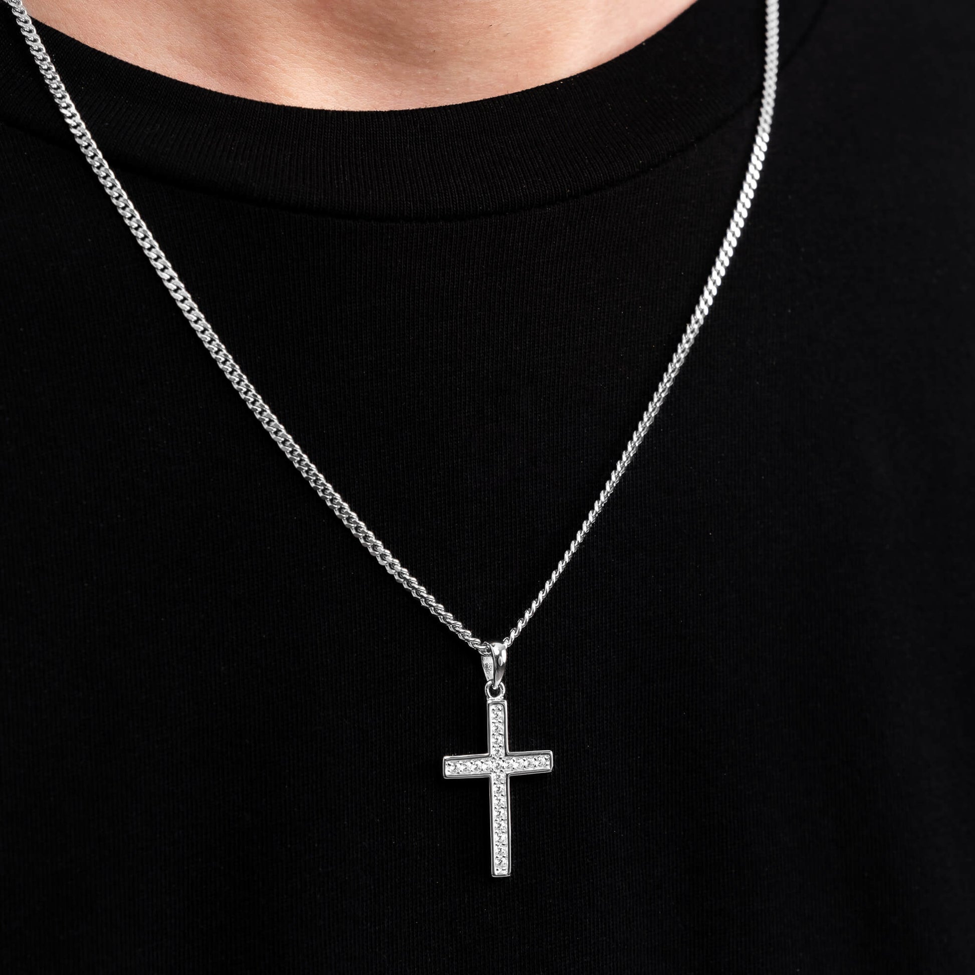 KREUZ HALSKETTE ICED OUT 925 SILBER RHODINIERT