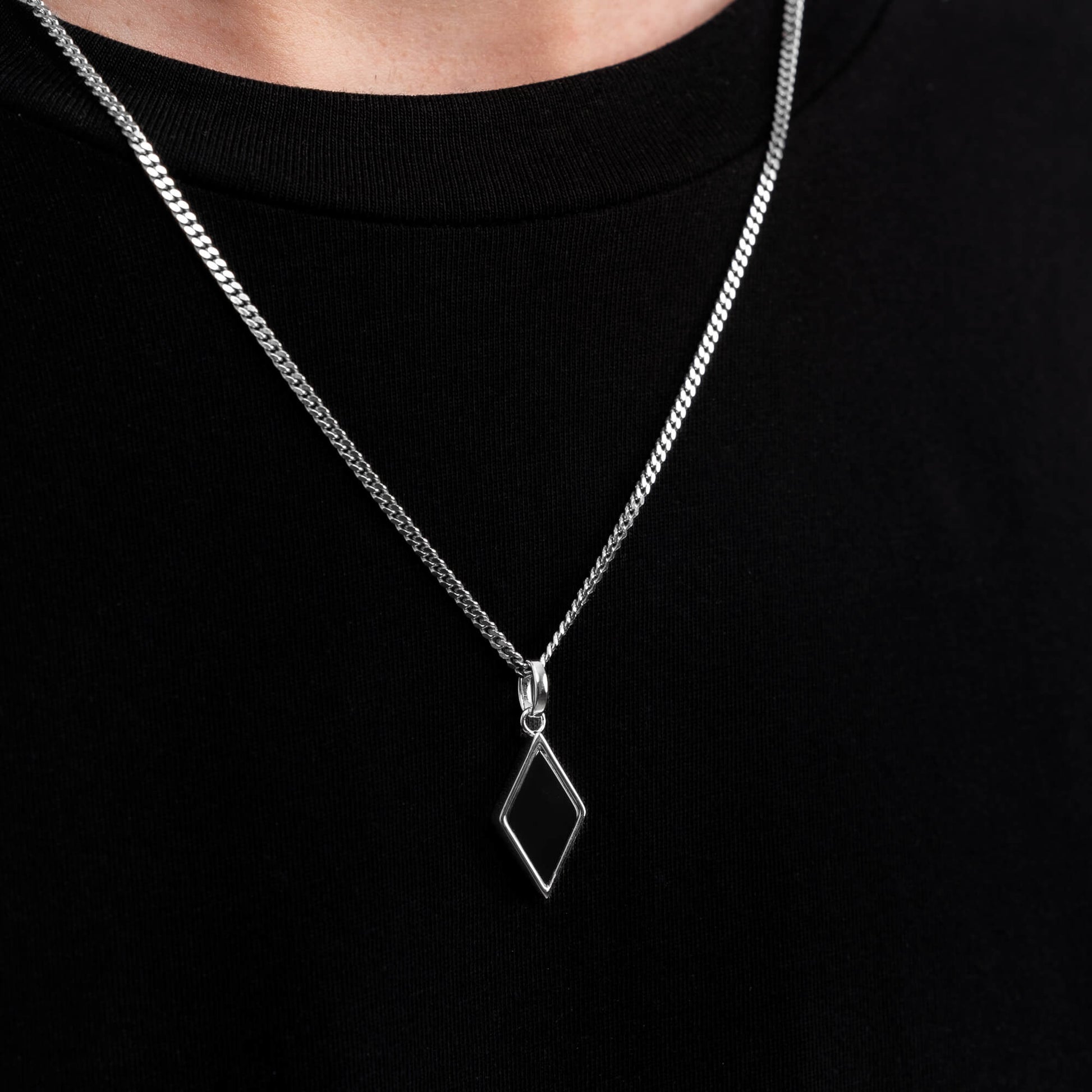 ONYX RAUTE HALSKETTE 925 SILBER RHODINIERT
