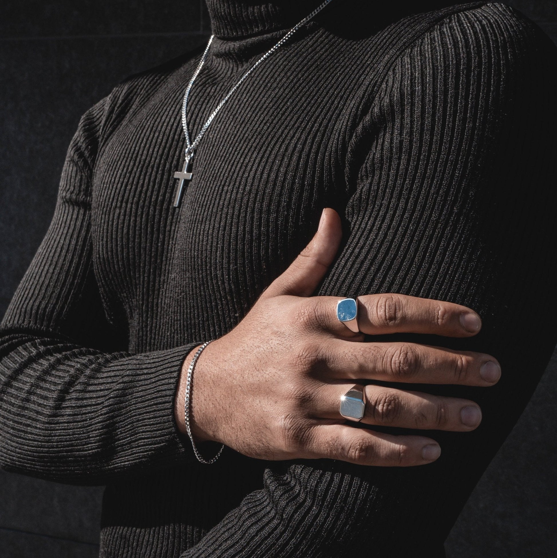 SIEGELRING LAPIS SQUARE 925 SILBER RHODINIERT