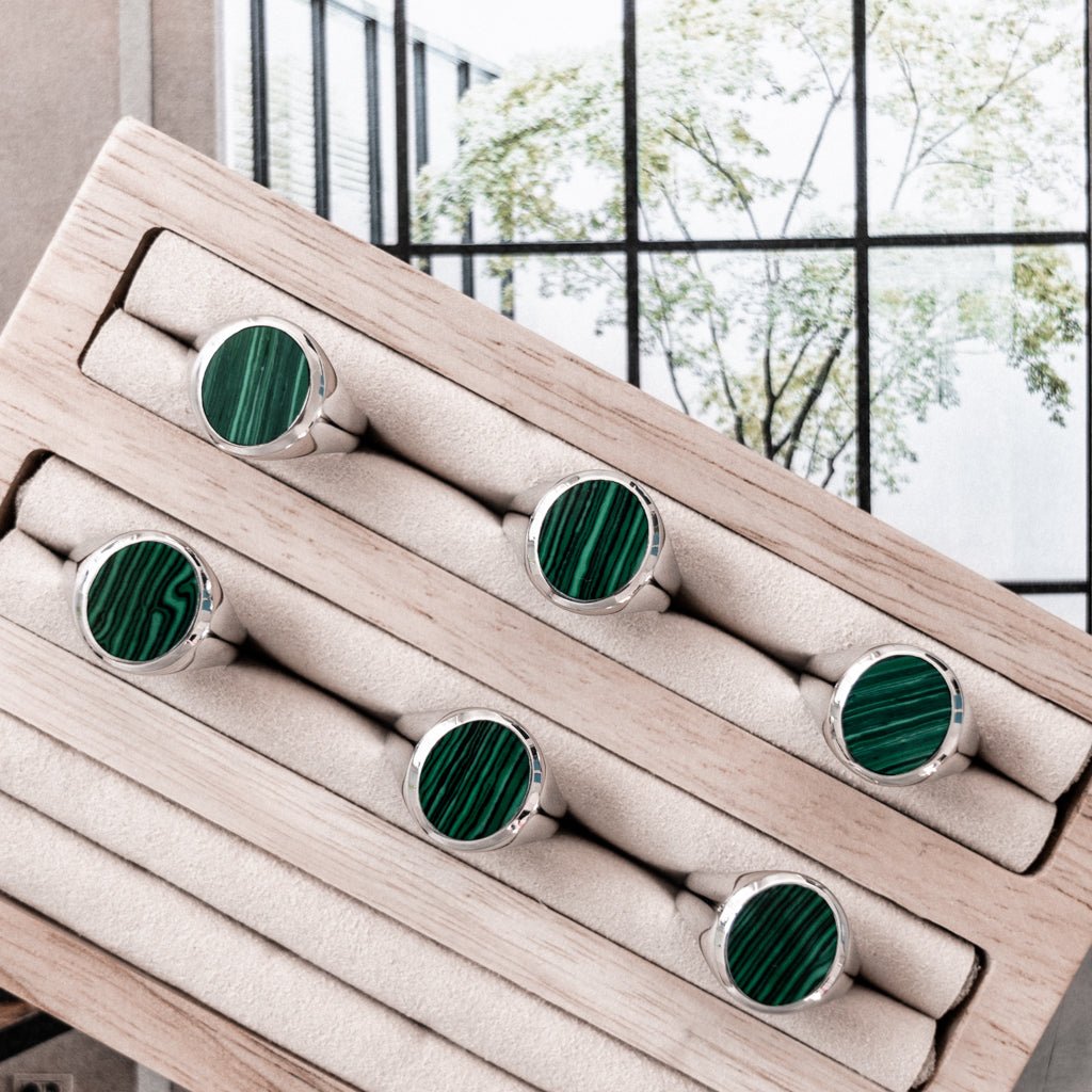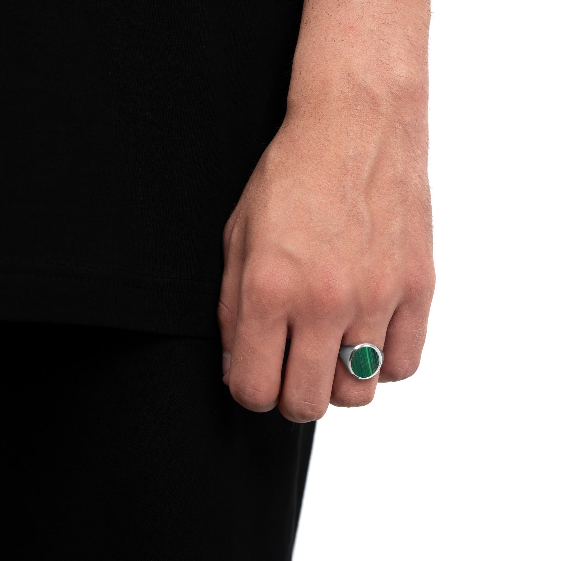 SIEGELRING MALACHIT OVAL 925 SILBER RHODINIERT