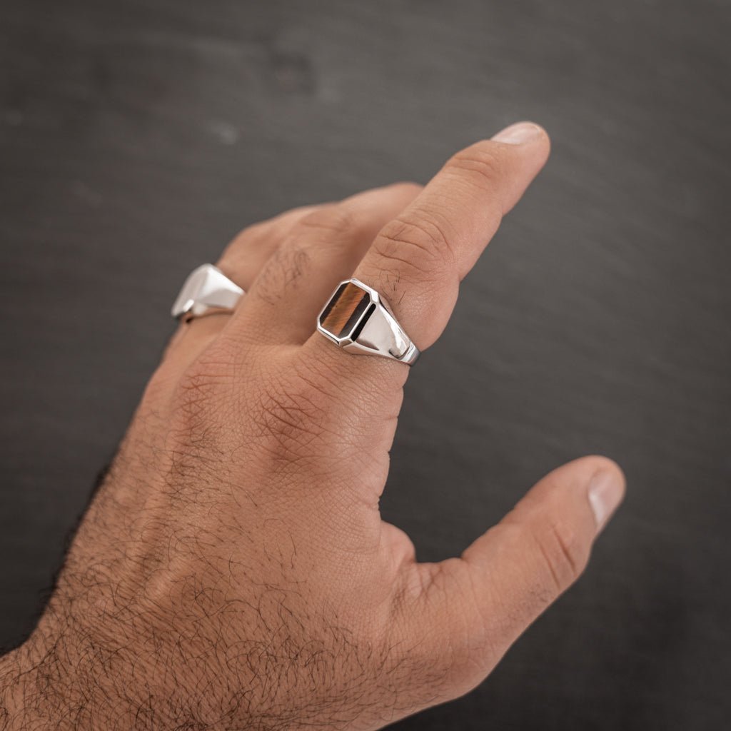 SIEGELRING RED TIGEREYE OKTAGON 925 SILBER RHODINIERT
