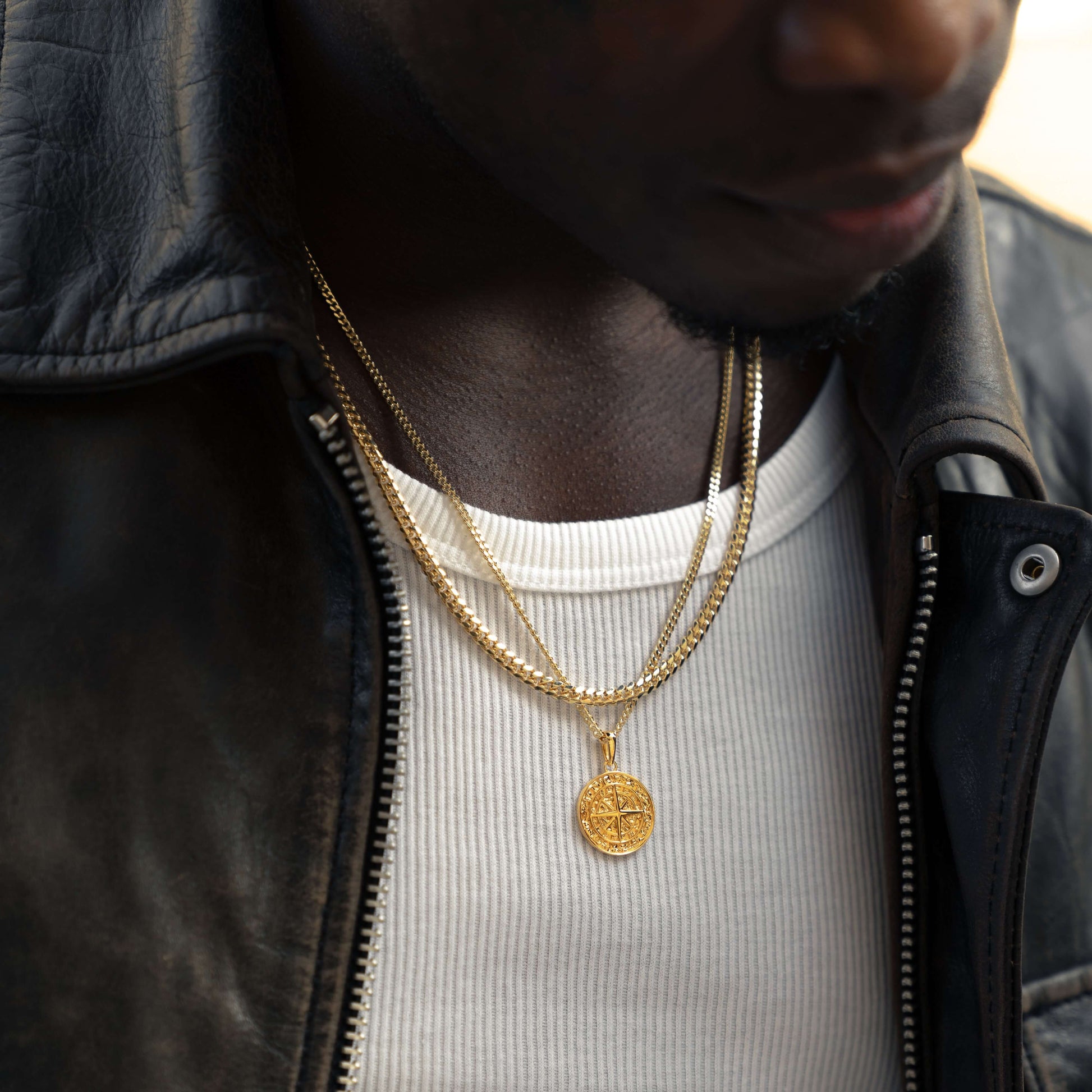 KOMPASS HALSKETTE PANZERKETTE SET 925 SILBER 18 KARAT VERGOLDET