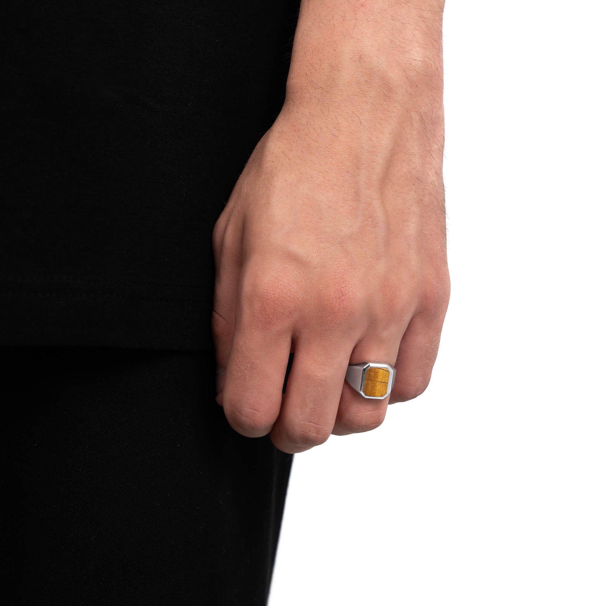 SIEGELRING TIGERAUGE OKTAGON 925 SILBER RHODINIERT