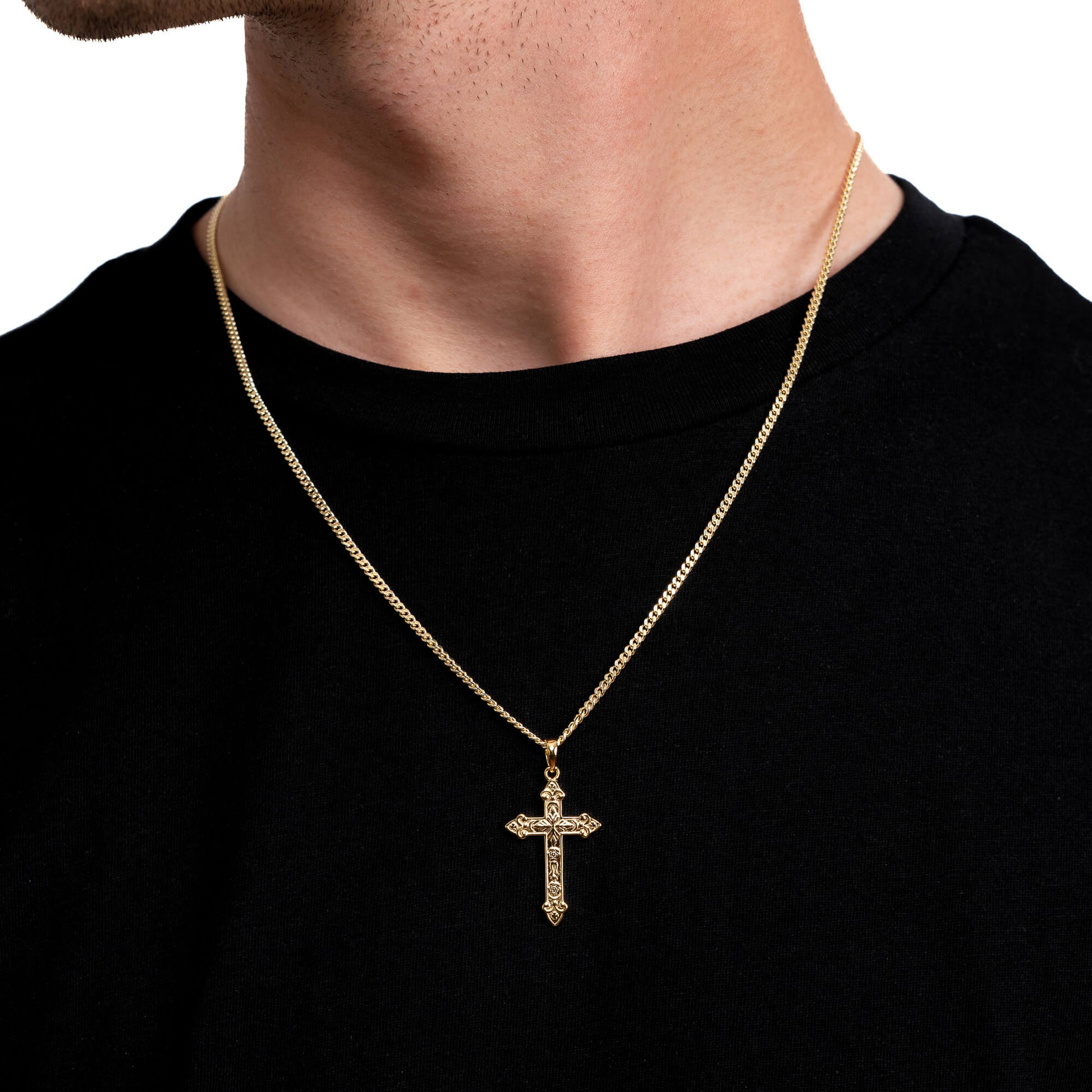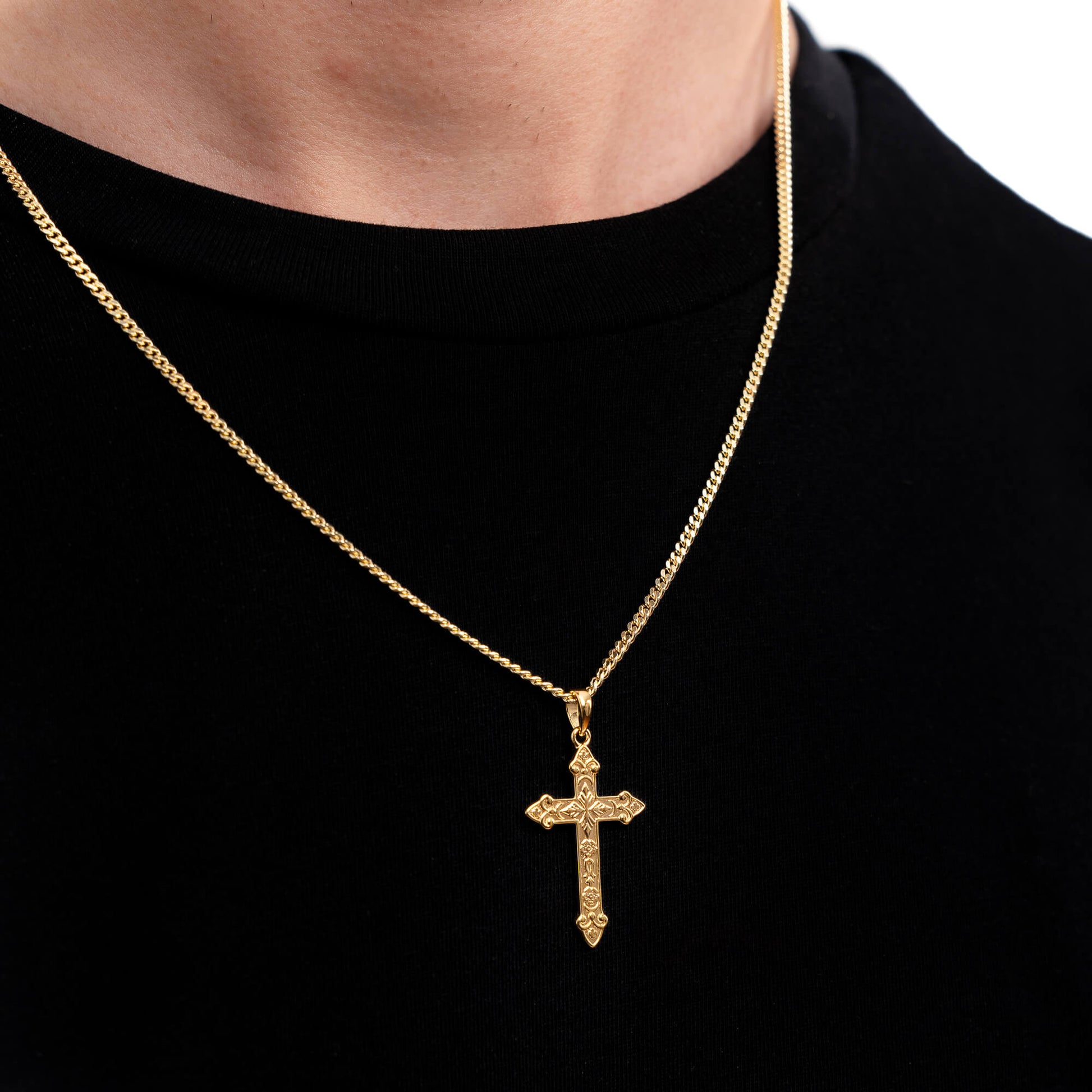 KREUZ HALSKETTE ORNAMENTE 925 SILBER 18 KARAT VERGOLDET