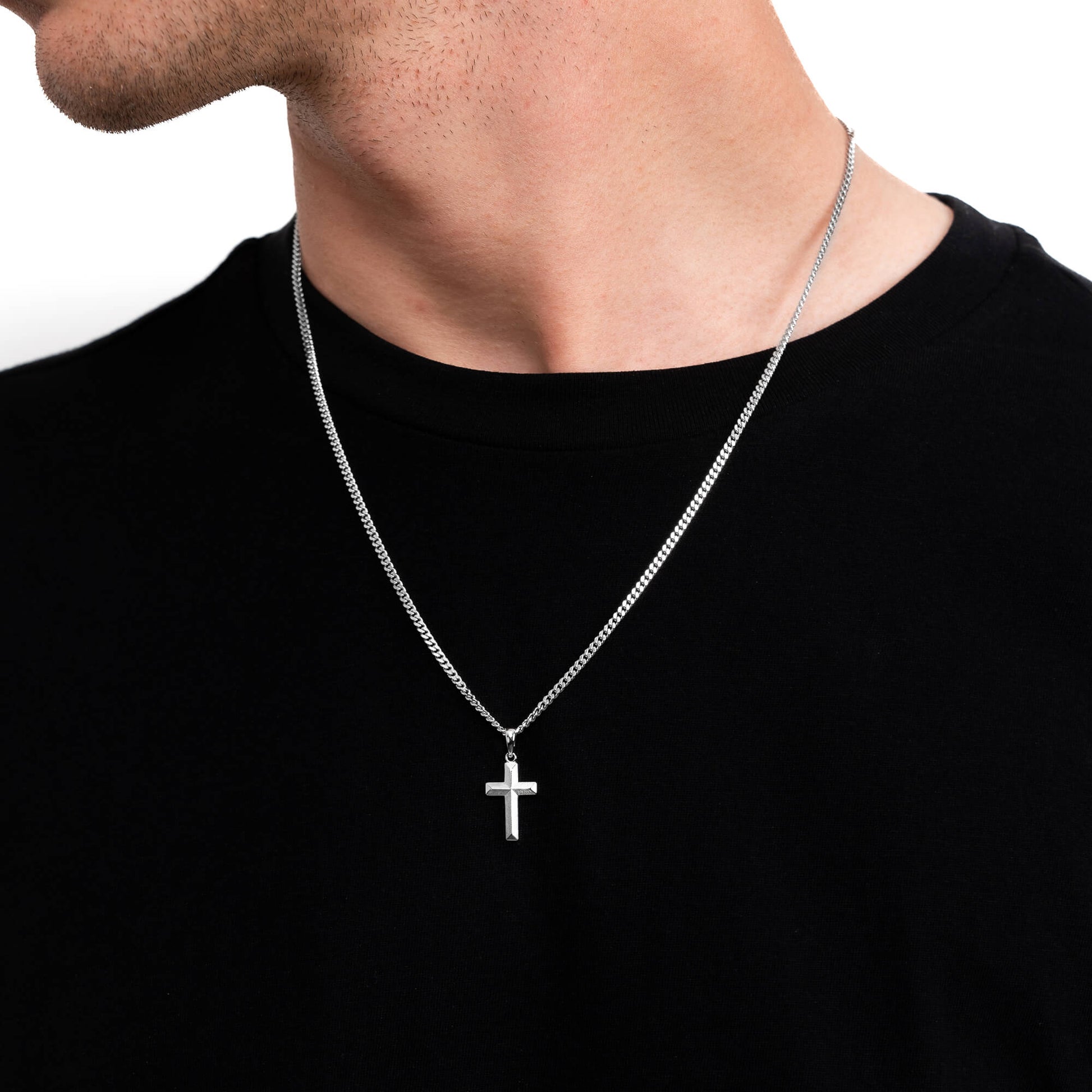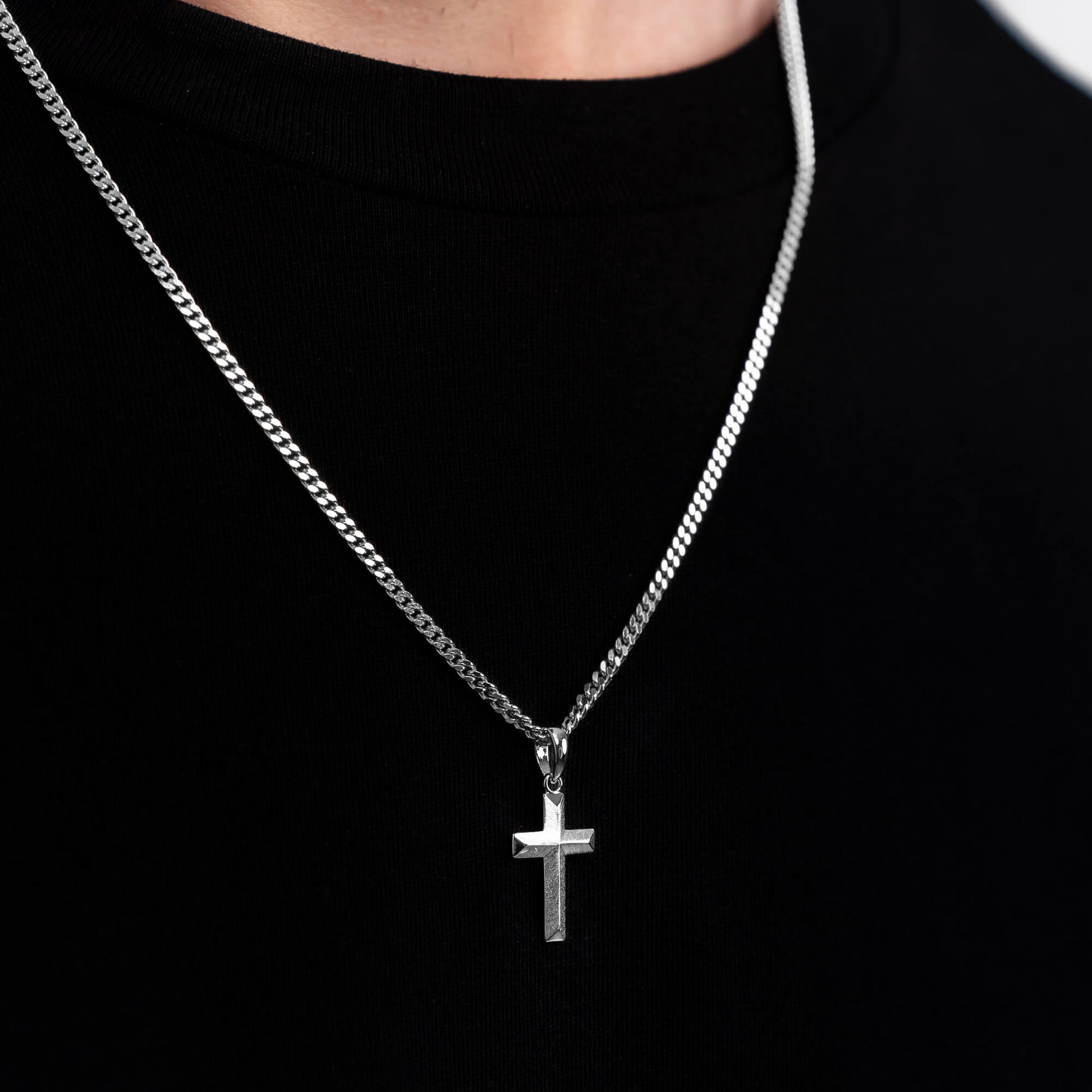 KREUZ HALSKETTE DIAMANTIERT 925 SILBER RHODINIERT