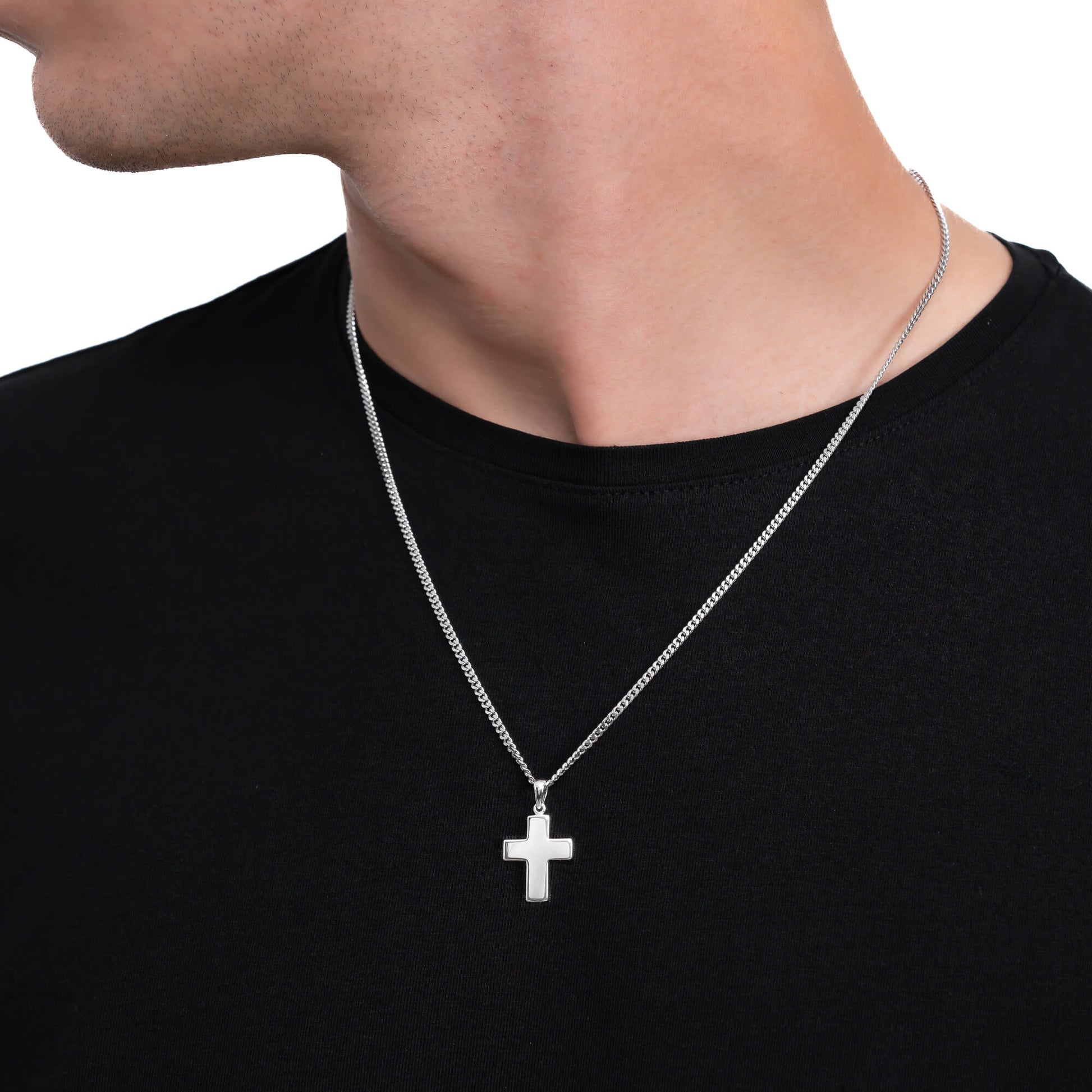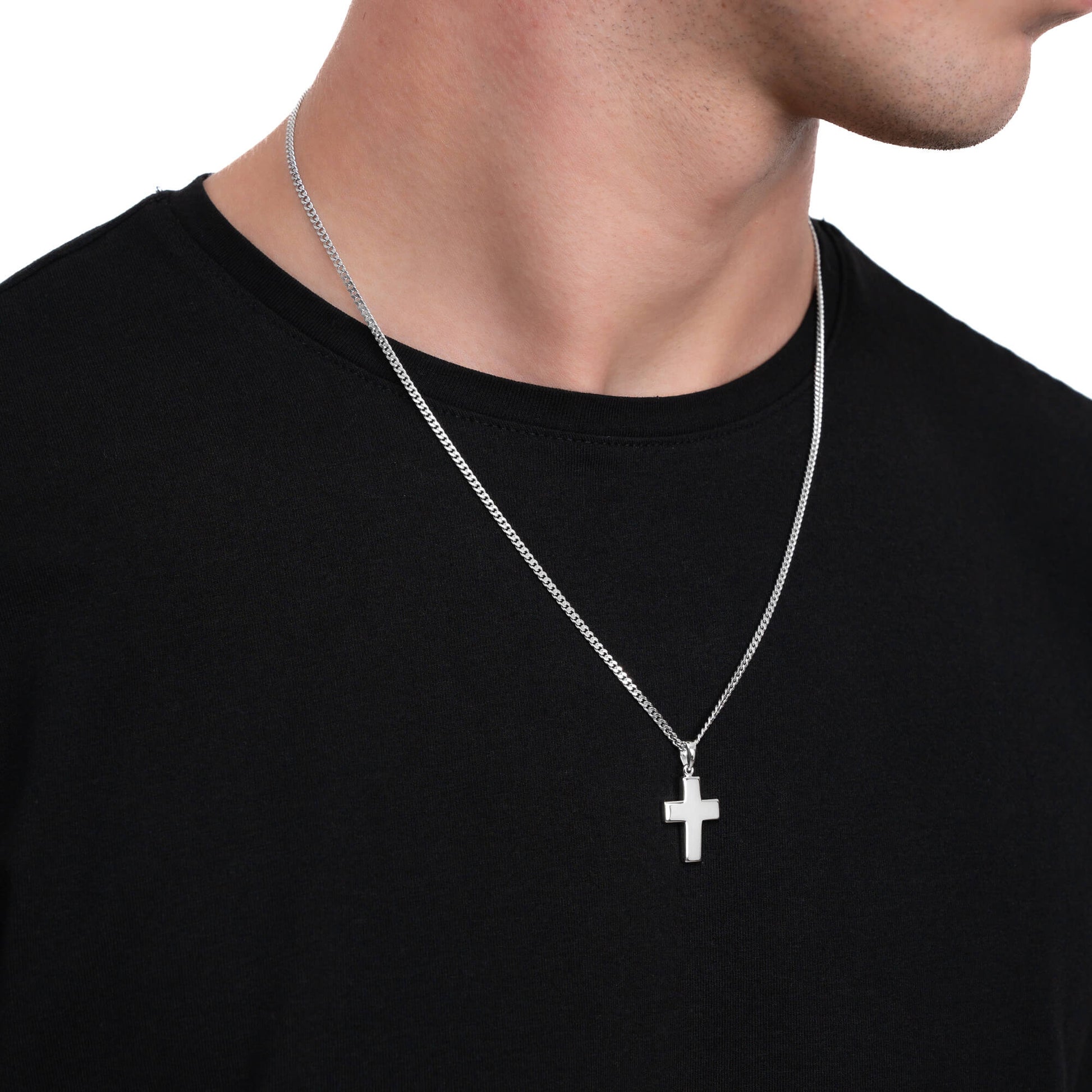 KREUZ HALSKETTE POLIERT 925 SILBER RHODINIERT