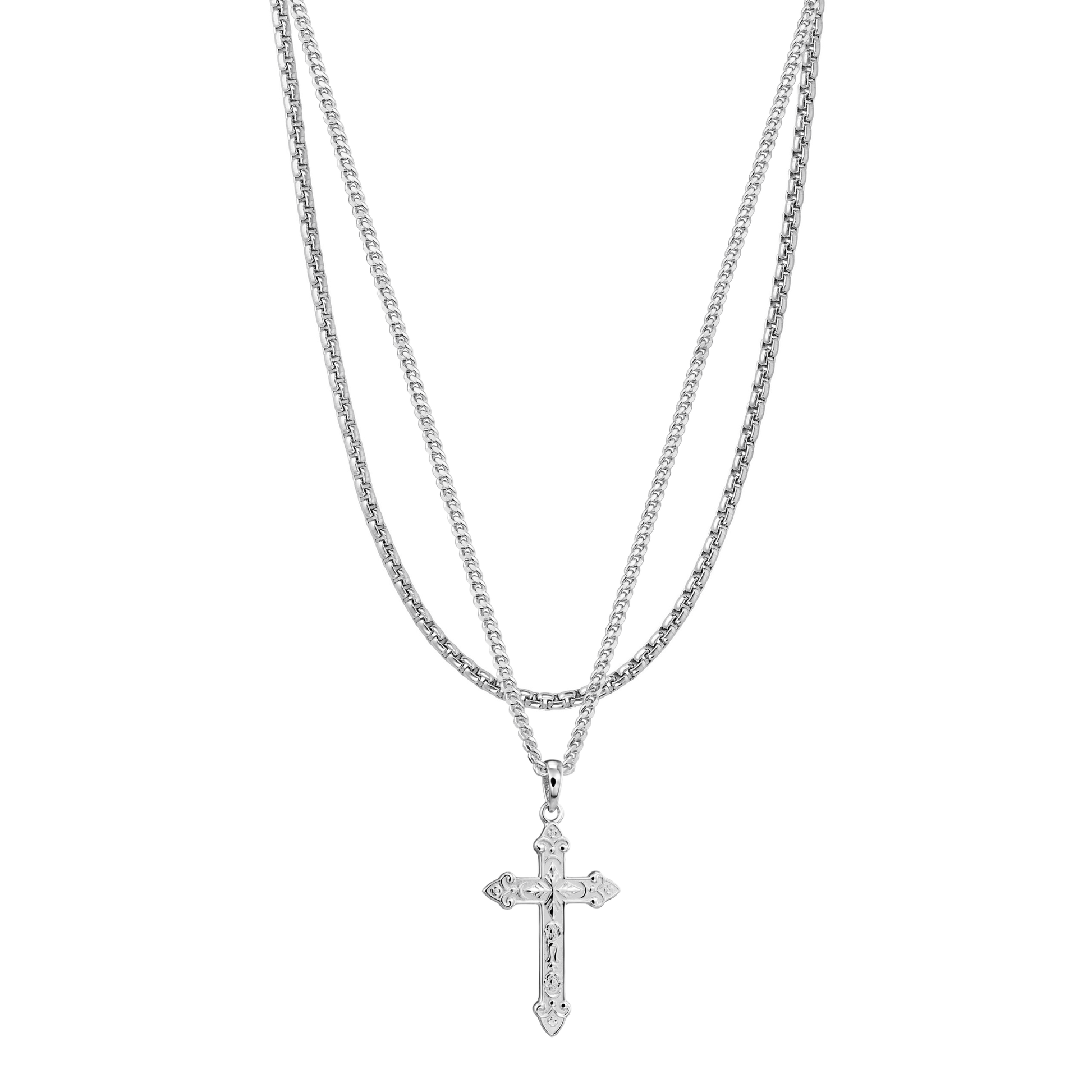 KREUZ HALSKETTE VENEZIANERKETTE SET 925 SILBER RHODINIERT