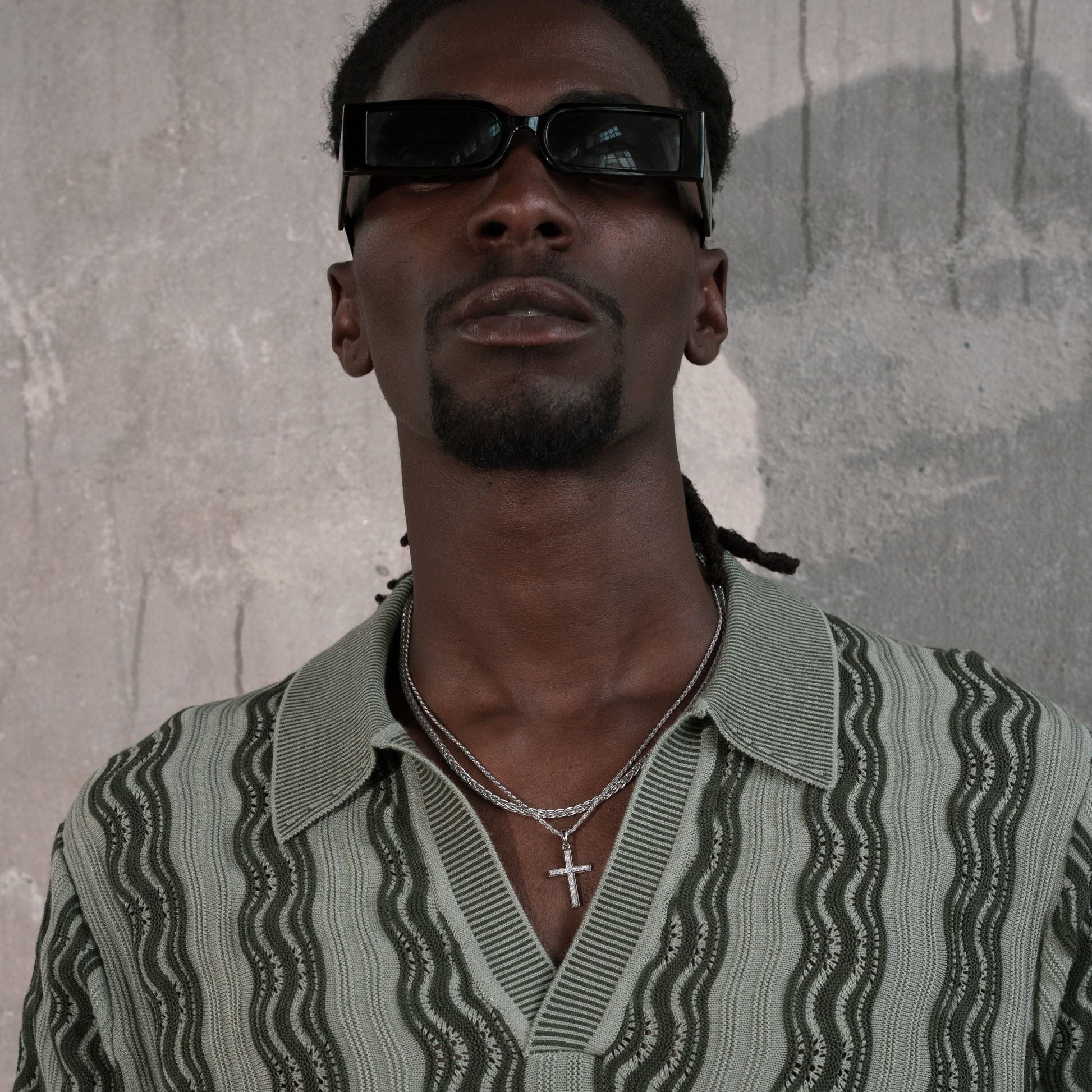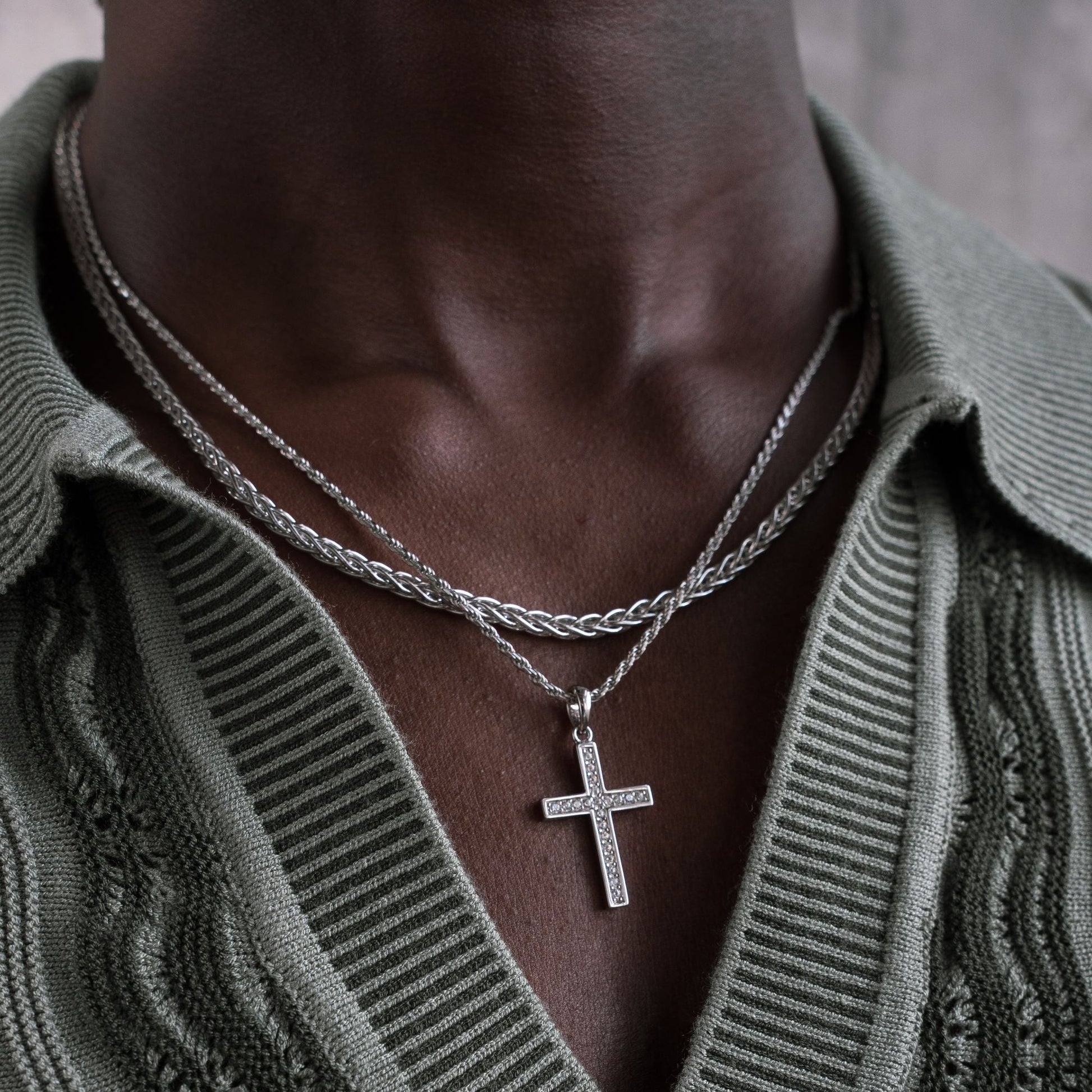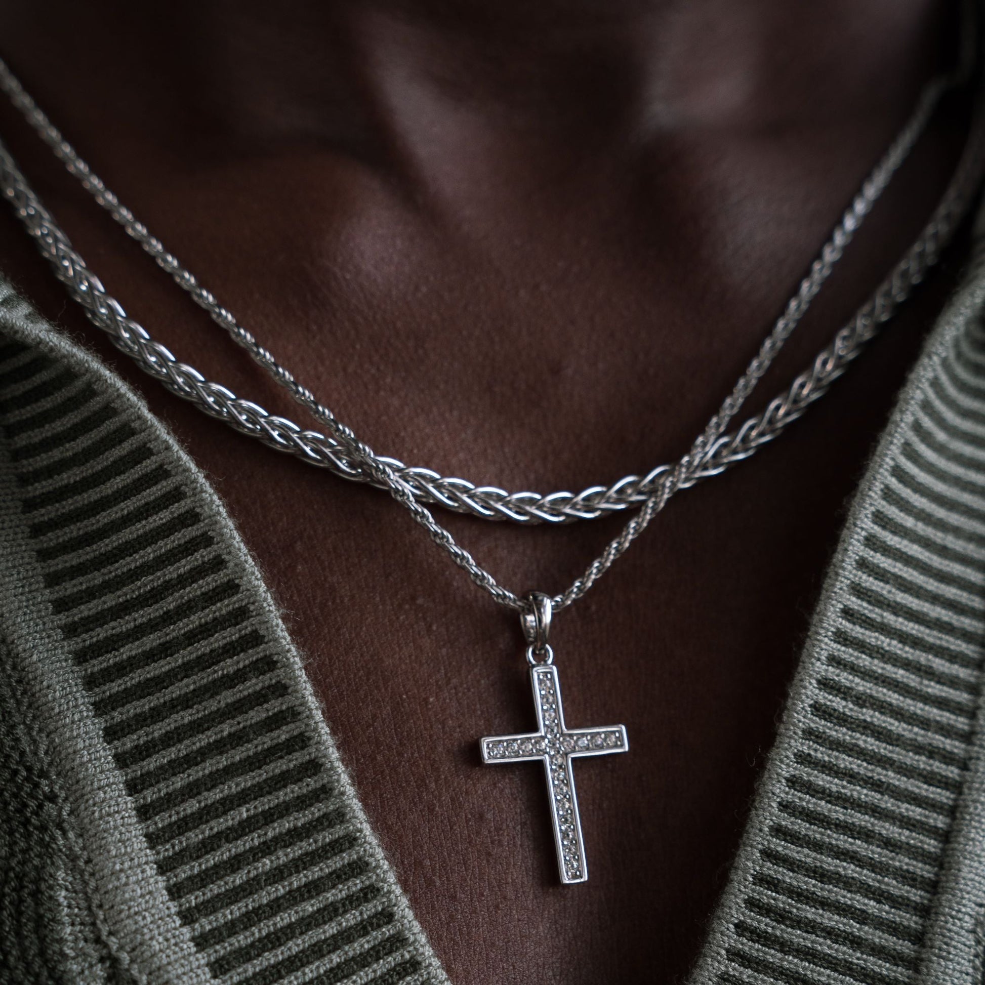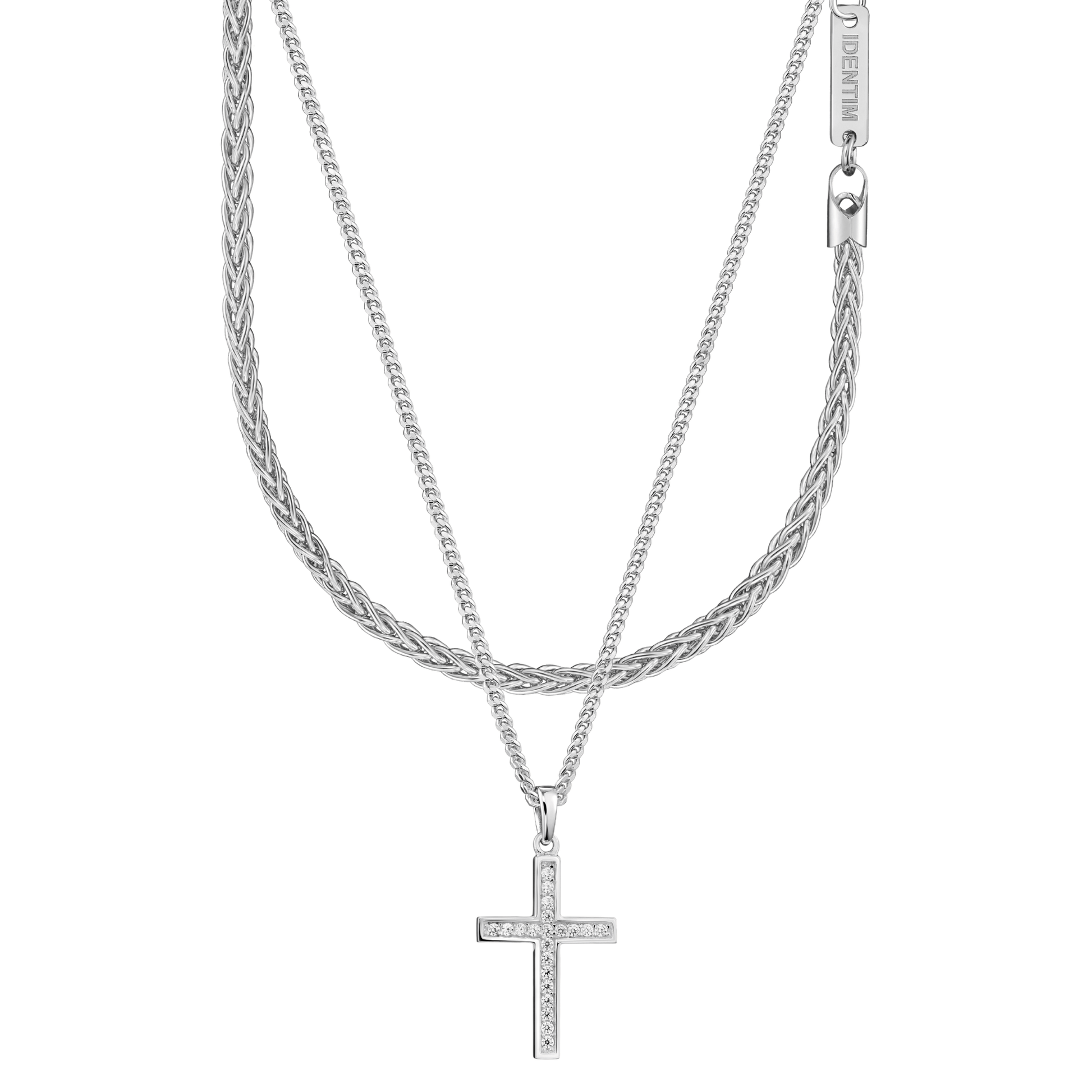 KREUZ HALSKETTE ZOPFKETTE SET 925 SILBER RHODINIERT