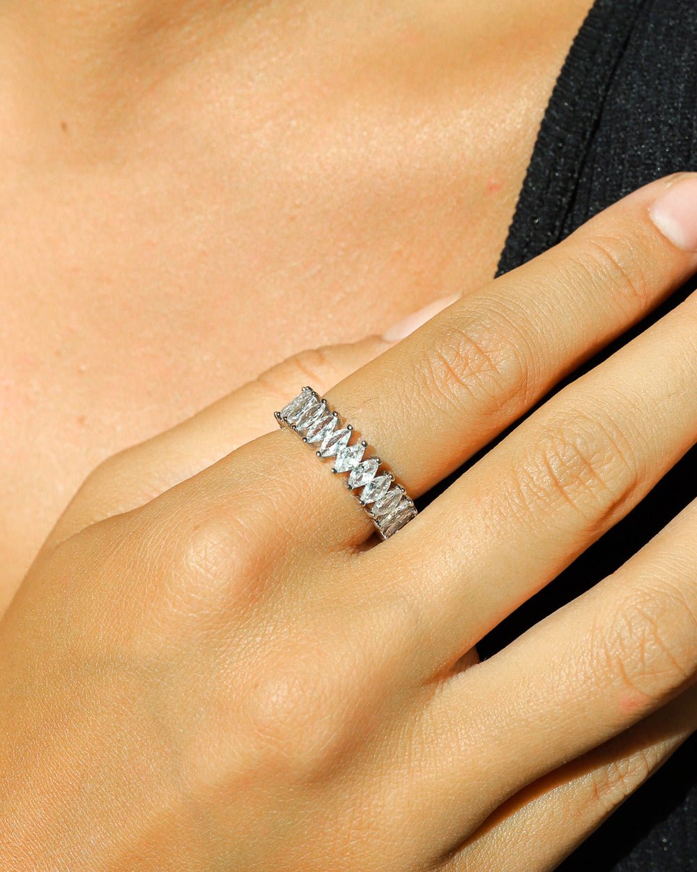 MARQUISE CUT BAND 925. - WHITE GOLD