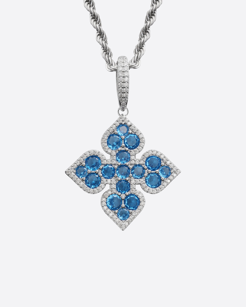 MOISSANITE BLUE CLOVER PENDANT. - WHITE GOLD