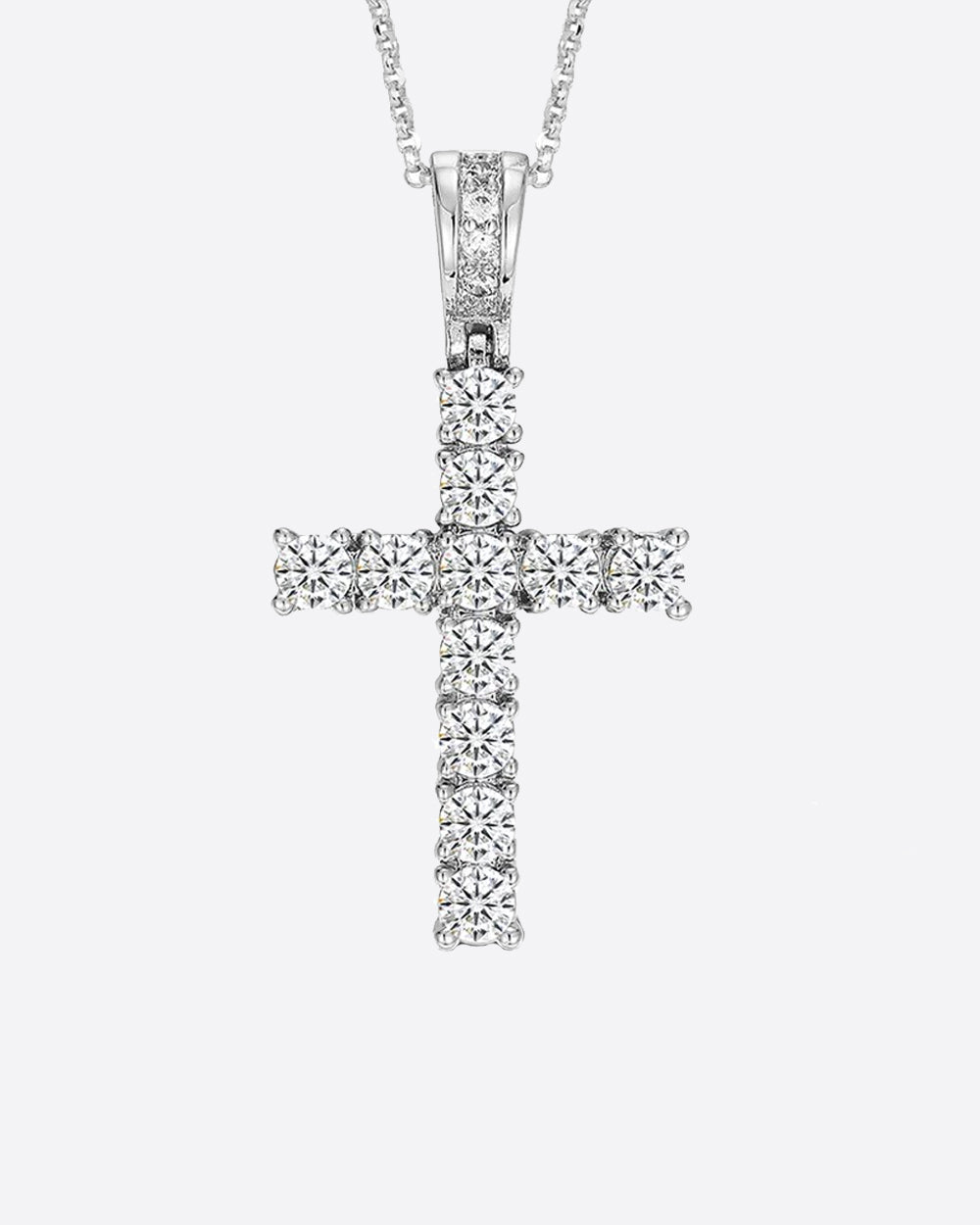 MOISSANITE CROSS PIECE PENDANT. - WHITE GOLD