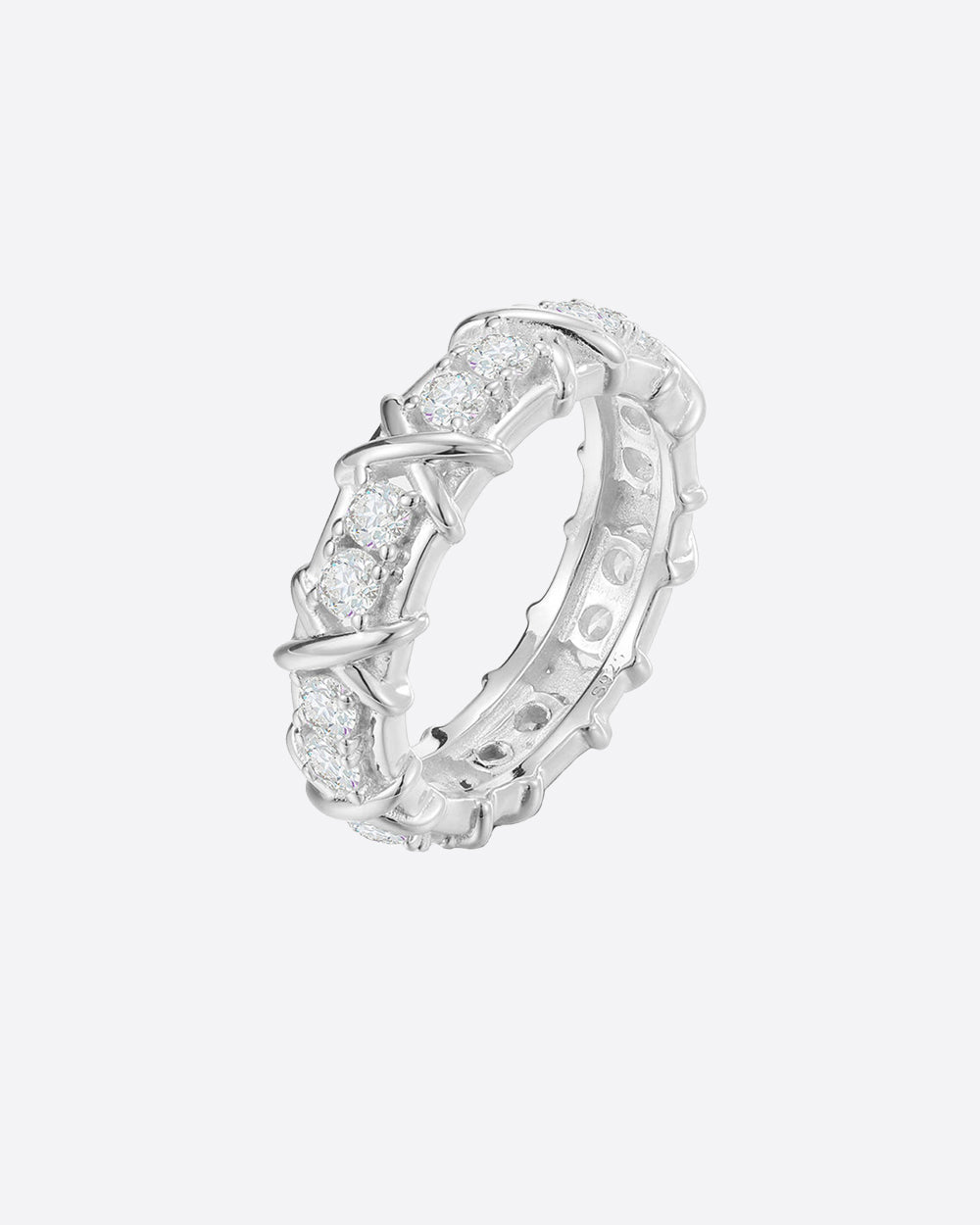 MOISSANITE ETERNITY X RING. - WHITE GOLD