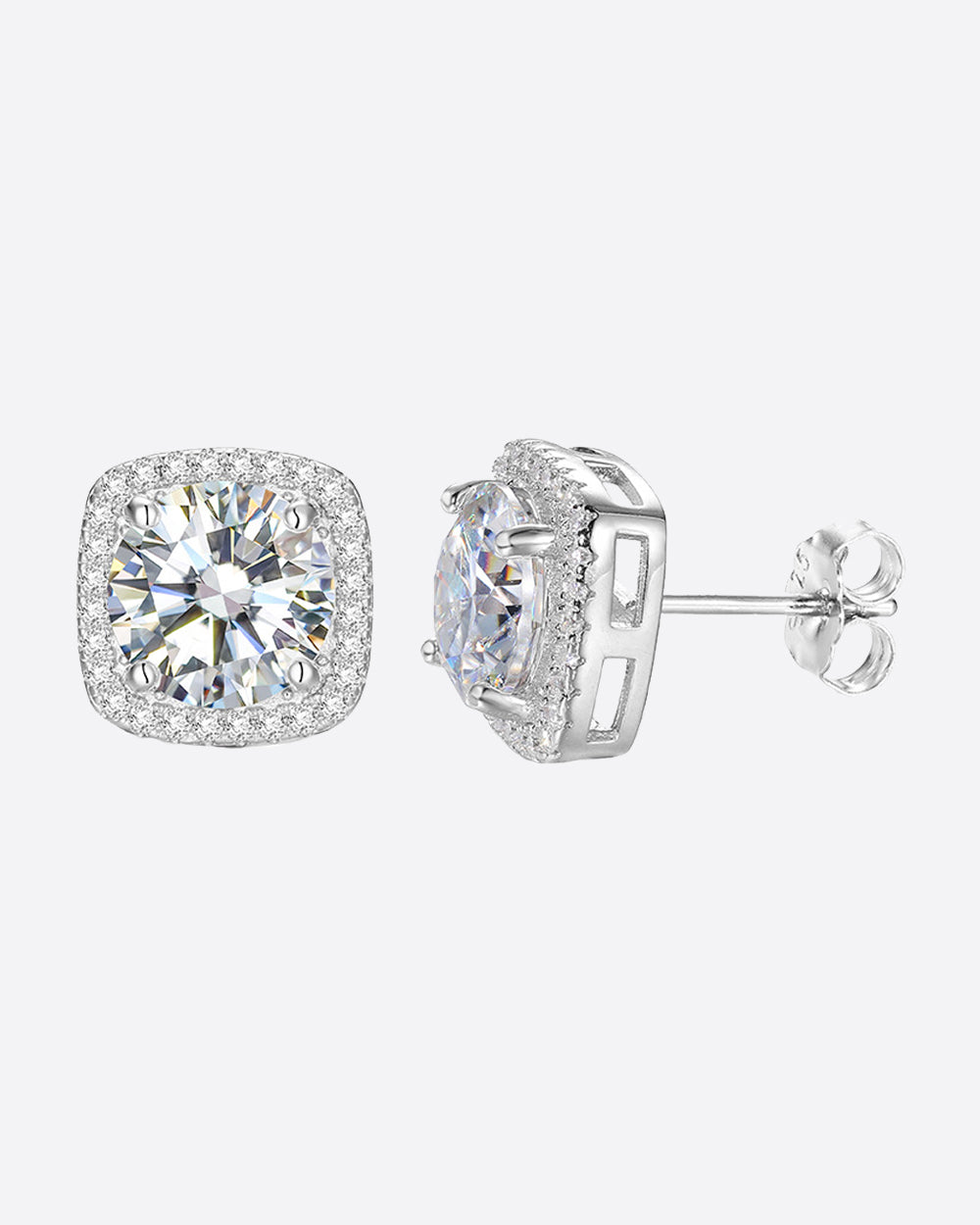 MOISSANITE HALO EARRINGS. - WHITE GOLD