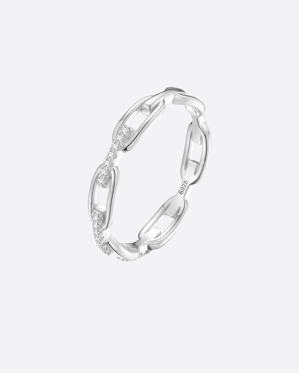 MOISSANITE ICED CHAIN RING. - WHITE GOLD