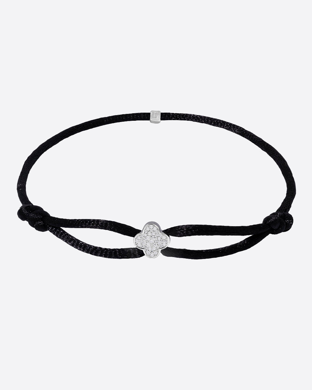 MOISSANITE ICED CLOVER CORD BRACELET. - WHITE GOLD