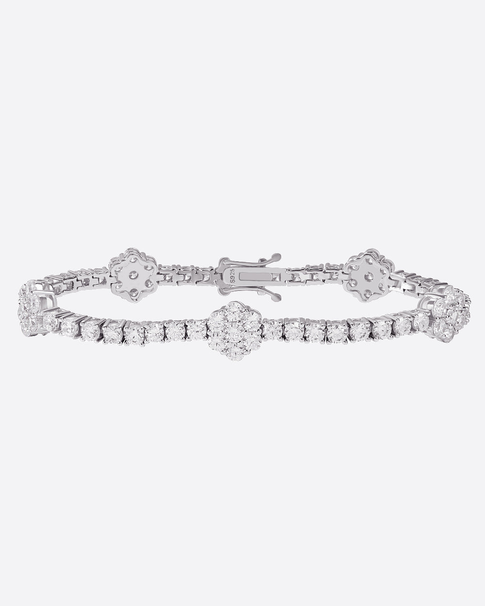MOISSANITE ICED FLOWERS TENNIS BRACELET. - WHITE GOLD