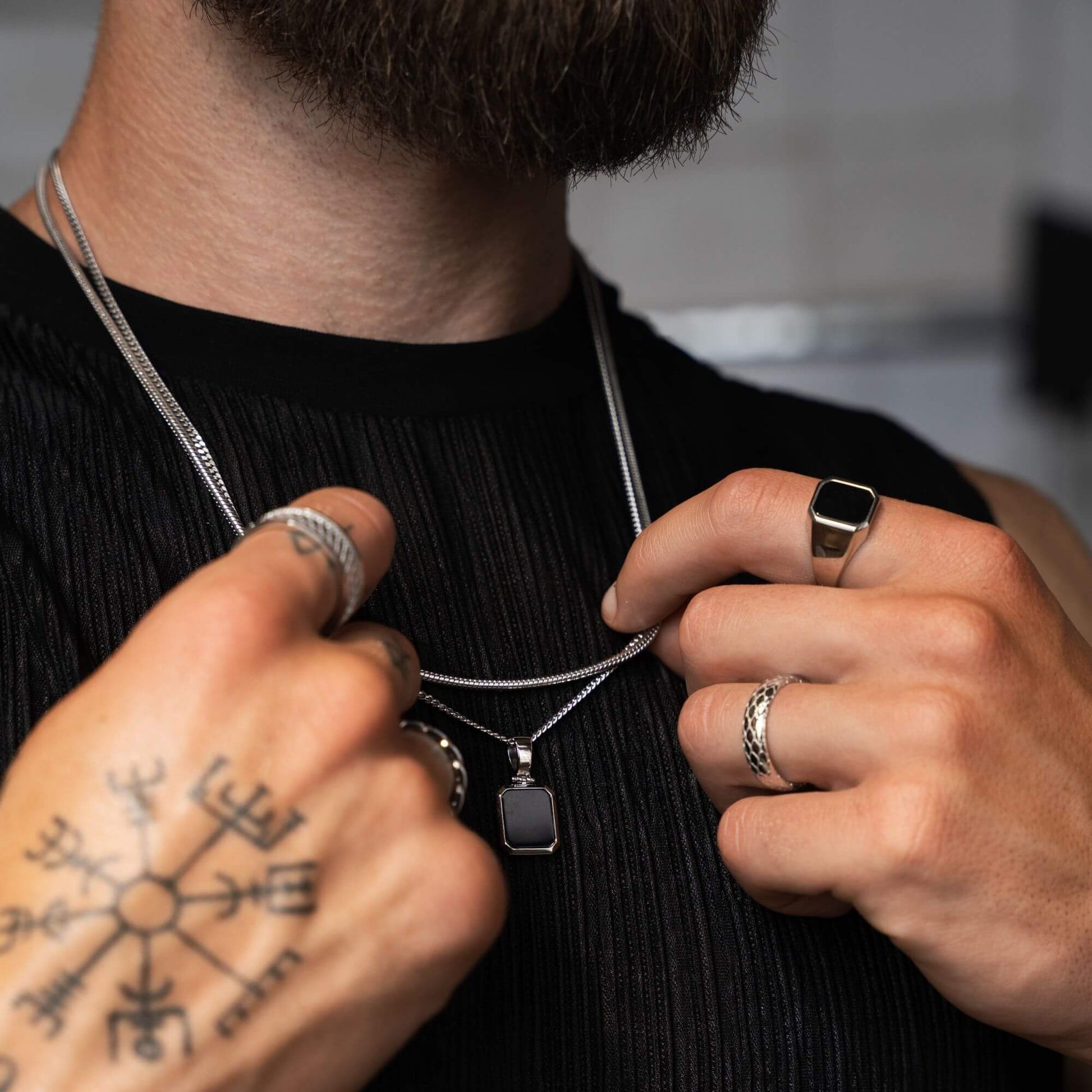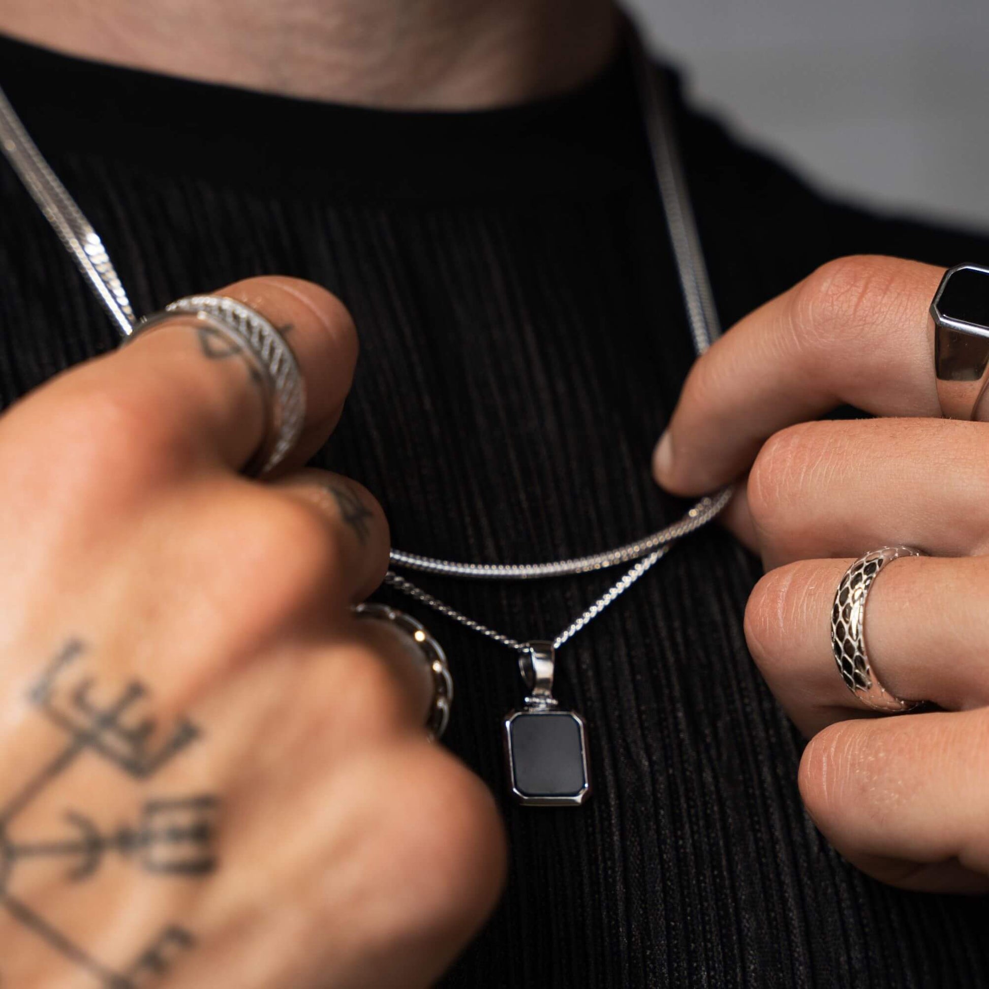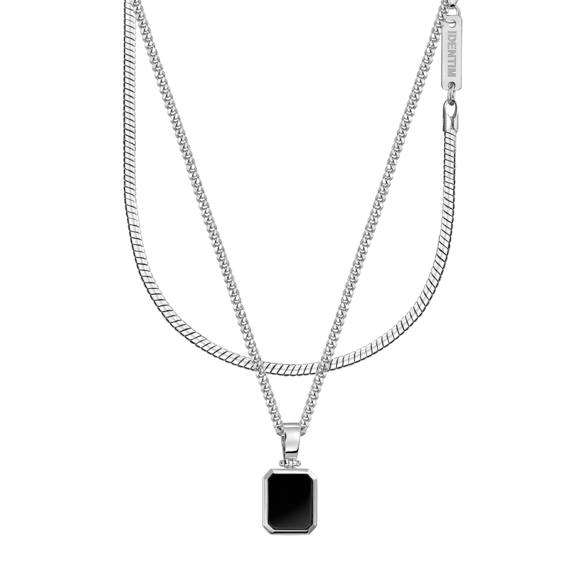 ONYX HALSKETTE SCHLANGENKETTE SET 925 SILBER RHODINIERT