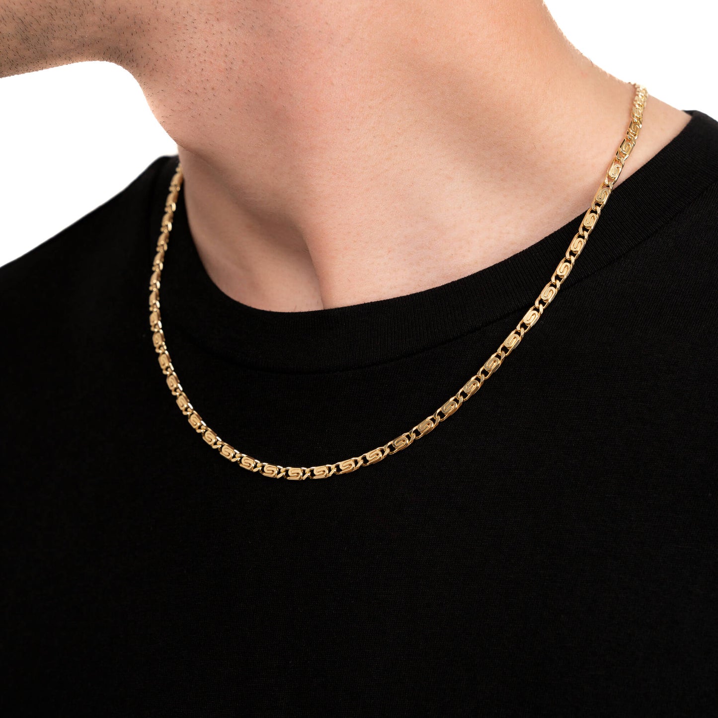 Dieses Schmuckstück ist aus massivem 316L-Edelstahl gefertigt und dreifach mit edlem 18-karätigem Gold beschichtet. Es bietet die Optik und Haptik von massivem Gold ohne den hohen Preis. Dank unseres fortschrittlichen Anlaufschutzes ist es beständig gegen Verblassen, Kratzer und tägliche Abnutzung und verliert garantiert nie seinen Glanz.
