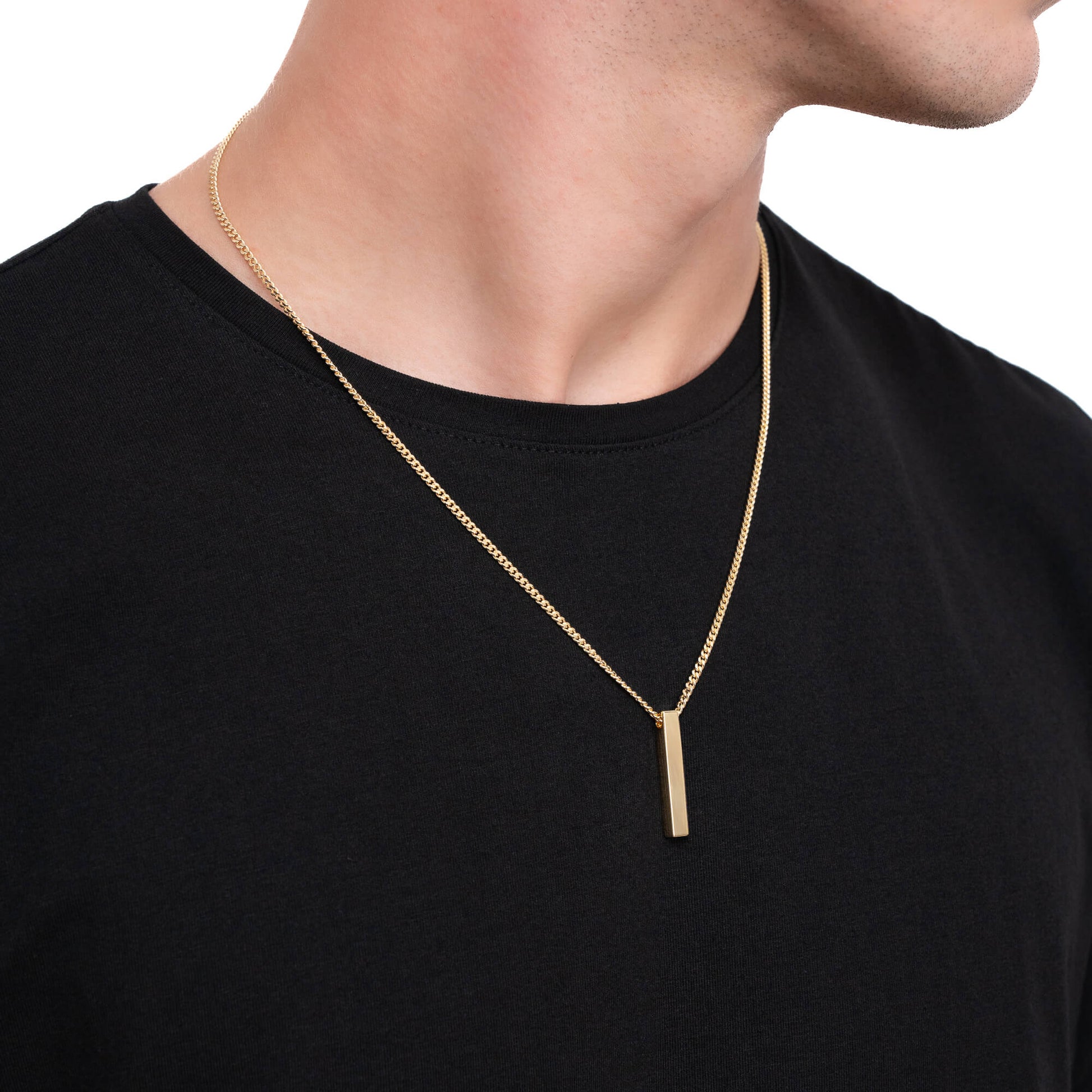 STAB BAR HALSKETTE POLIERT 925 SILBER 18 KARAT VERGOLDET