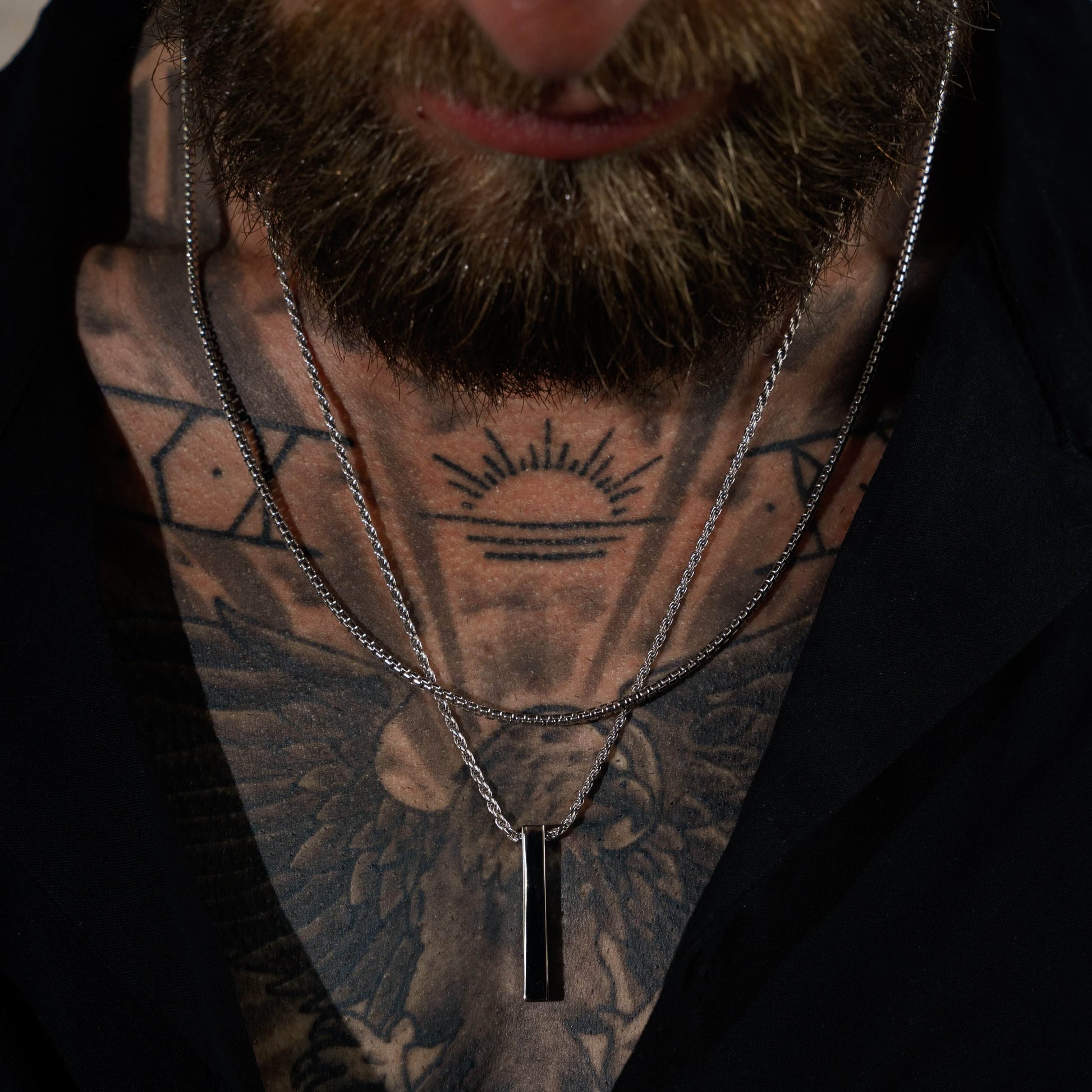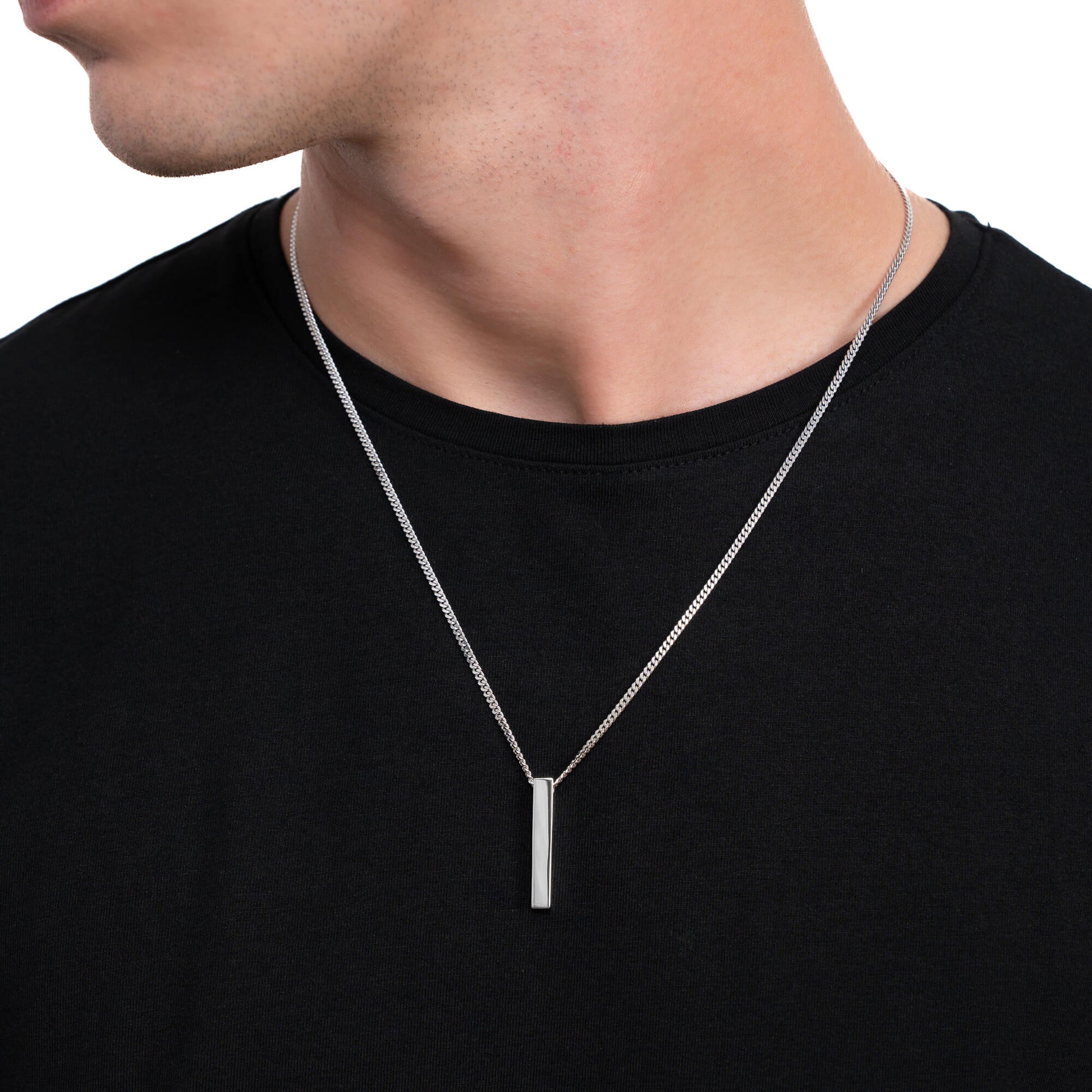 STAB BAR HALSKETTE POLIERT 925 SILBER RHODINIERT